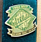 1992 MVP Season Ticket Holder Oakland Athletics A's pin 25th Anniversary Item Description: Type: MLB licensed, silver tone, post and tie-clasp backed, lapel / hat pin Size: measures about 1.5" wide Condition: Excellent condition, minor nicks, marks, light yellowing. Toning on the back. Snap-tite plastic box - some wear, nicks and scratches. There is a crack across the bottom of the box diagonally. No chips or broken hinges/snaps Packaging: snap-tite plastic box Packaging condition: some wear, nicks and scratches. There is a crack across the bottom of the box diagonally. No chips or broken hinges/snaps Shipping: Shipping Time : 1 business day of receiving cleared payment, Mondays thru Fridays. U.S.A. Shipping Costs: FREE! Payment: PayPal is the fastest method, just use the link after buying the listing. Return Policy: Returns accepted, buyer pays return shipping unless there’s an error on seller’s part. Additional Information: Full e-mail support for inquiries or problems. HIGH COUNTRY COLLECTIBLES Since 1989 – A LEADER IN THE DENVER SPORTS MEMORABILIA MARKET. Check out my other auctions and listings, and keep an eye out for the different, unusual, and EXCLUSIVE items available nowhere else but from High Country Collectibles. Don’t forget to click on my "Stores" link, next to my eBay name, to see other items I currently have listed for sale, or you can copy and paste this address into your browser: stores.ebay.com/highcountrycollectibles