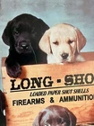 1996 Tin Advertising sign 12x14.5” Long Shot Loaded paper shells Featuring a print of an expertly finished painting, showcasing antique wooden shell boxes filled with 5 Lab pups ready to start field training. The detail is remarkable There is no signature or mention of the artist name. Measures 12x 14.5” The last few photos show minor scratches Thanks for looking