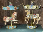 Enhance your holiday decorations with this beautiful set of 8 Bradford Edition Carousel Horse Ornaments. Crafted with exquisite details, these multicolored ornaments are perfect for any collector or horse lover. Each ornament portrays a different horse, representing a season or holiday, making them a great addition to your Christmas tree or year-round decor. The set includes a variety of horses from the Bradford Exchange, all manufactured in 1999. Don't miss out on this unique collection of carousel horse ornaments. Stones are intact on each side of horse except for one side, light green stone, on Summertime Cantor. I have relisted them and lowered the price because 4 of the 8 have repairs in the resin pictured and one with missing lower leg, can’t really tell on a tree but priced accordingly. These are really detailed and beautiful! Need a new home that would appreciate them.