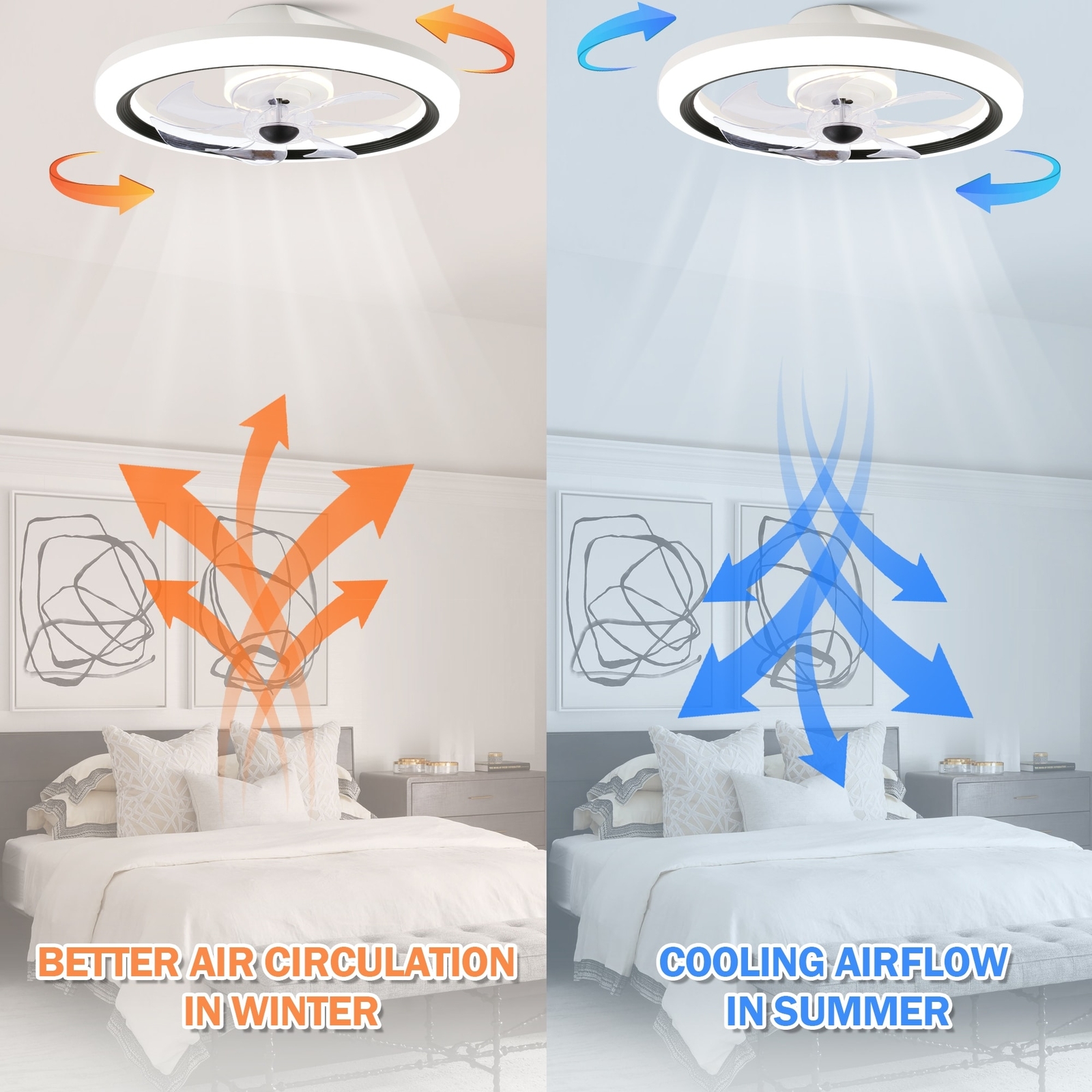 Introducing the perfect addition to your modern home a ceiling fan with a stunning matte finish that will elevate any room's décor. With its six fan speeds and three light temperature options, this fan provides you the ultimate cooling and illuminating experience . Its reversible whisper-quiet motor ensures that the fan operates smoothly and quietly, giving you the ultimate relaxation experience. With phone app control, you can easily operate the fan from anywhere in the room, adjusting the 6 fan speed or 3 light temperature to suit your needs.Features: Eye-catching matte white finish adds a touch of modern style to your décor Remote control and phone apps control give your the most convenient ceiling fan experience. 6 fan speeds, 3 light temperatures and dimming function are for you Free Shipping Over $49.99* Details CurveCurio 19" Matte White Flush Ceiling Fan App Control Remote Control 6 Speed Product Description: Introducing the perfect addition to your modern home a ceiling fan with a stunning matte finish that will elevate any room's décor. With its six fan speeds and three light temperature options, this fan provides you the ultimate cooling and illuminating experience . Its reversible whisper-quiet motor ensures that the fan operates smoothly and quietly, giving you the ultimate relaxation experience. With phone app control, you can easily operate the fan from anywhere in the room, adjusting the 6 fan speed or 3 light temperature to suit your needs. Features: Eye-catching matte white finish adds a touch of modern style to your décor Remote control and phone apps control give your the most convenient ceiling fan experience. 6 fan speeds, 3 light temperatures and dimming function are for you to choose from, able to meet the needs of all kinds of occasions Reversible whisper-quiet motor that circulates air in the winter and cools your space in the summer. Dimensions: 19.7 * 19.7 * 4.9 Additional Info : 19-inch ceiling fan is perfect for small rooms (up to 75 sq ft.) Slope Ceiling supported up to 15 degrees This product is UL listed for a dry environment MaterialSteel, Plastic ColorWhite FinishMatte LightIncluded LED Kit Light Wattage28W Light Kit replaceableYes DimmableYes Light color tone3warm light(3000k); warm white(4500k); white light(6000k) Motor wattage15W PRM501-599-692-788-892-994 (6 speeds) Fan blades7 reversibleYes Phone App ControlYes RemoteYes Remote control included (battery not included, please use AAA batteries) WarrantyLifetime on motor and one year on all the other parts