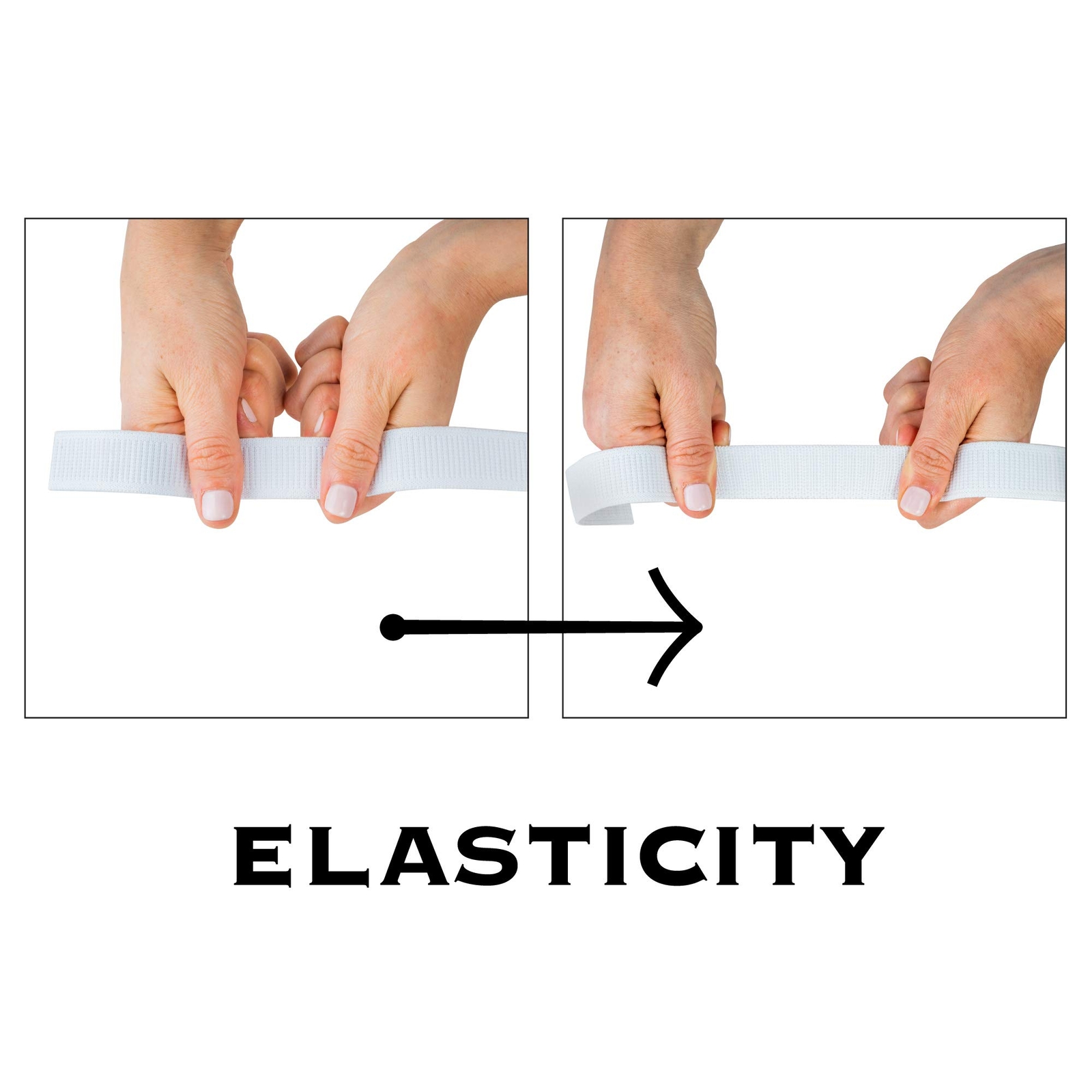 Each spool contains 50 yards of white elastic measuring 1-inch wide 72% polyester and 28% rubber Elastic is perfect for waistbands in skirts, slacks, shorts and pants Ribbing prevents rolling and adds body to waistband construction Stretches easily and resumes its original shape and length