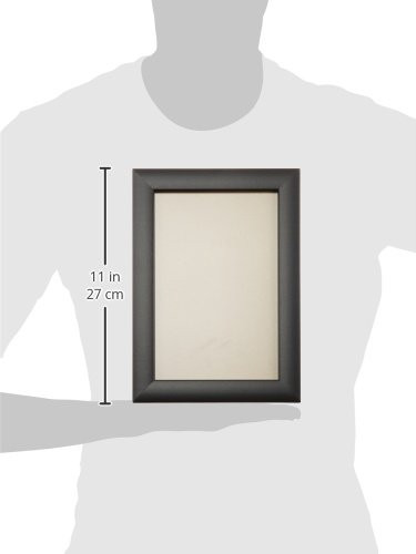 Contemporary style; black; smooth wrap finish Frame includes: glass, rigid black backing and pre-attached stamped hanging hardware Frame holds a 7 inch by 18 inch photo/print/poster (viewable area is slightly smaller) Frame moulding is 1 inch wide; wood composite material Made in the U.S.A.