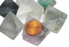 1 lb Jumbo Size Fluorite Octahedron Multiple pieces similar in size and quality to those pictured above. Pieces measure approximately 1.25" - 2" inch Octahedron is formed of Calcium Fluorite along cleavage planes in various colors: purple, green, clear, white streaked, glassy and luster. Attention Buyers: Please be aware UPS shipping requires a physical address. UPS packages can not be delivered to P.O. boxes.