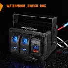 Multi-Function designed: This switch box is integrated with 2x20 amps Rocker switches rated at 12VDC and PD Type C& QC 3.0 USB charger with LED voltmeter. Suitable for most 12V-24V DC cars, UTVs/ATVs, trucks, trailers, RVs, caravans, buses, marine boats, yachts etc. Weatherproof Box: The switch box is designed to be waterproof,weatherproof and splash proof. The box is made of quality aluminum and protects the switches against short circuit and damage. All switches are pre-wire for easy installation. USB Charger and Voltmeter: PD Type C and QC 3.0 USB Charger enable you charge two devices simultaneously at full speed. It works for all USB-powered devices. Makes the charger 40% faster than conventional chargers; The voltmeter is built in the center of the USB charger, clearly shows the current readings of working volts, easily notice the voltage condition of the vehicles. Surface Mount: With surface mount enclosure. The box can be mounted either on the dash board, under dashboard, middle console or anywhere on the car. The bracket can be adjusted 360 degrees.This gives you more mounting options. Wide Application: The switches allows you to control up to 2 different devices,such as Led Light Bars, Rear Lights, Rock Lights, Windshield Lights,Off road Lights, Sasquatch Lights, Zombie lights and Wench power, etc. The complimentary transparent and night glow stickers enables you to DIY the switch according to your preference. Package Includes: 2 Gang pre-wired switch box with PD Type C and QC 3.0 USB charger and voltmeter, 1X transparent stickers,1X night glow stickers, 6 screws. Product Description Specifications: Input voltage: 12V/24V DC Amp rating for each switch: 12V DC/20AMP; 24V DC/10AMP Switch Terminal: 5 PIN LED Color: Blue Voltmeter: 12V/24V DC Package Include: 1 x Multi functional 2 Gang switch panel box 4 x Fixing screws 1 x DIY Sticker, 1x Night Glow Sticker 1 x Wiring Diagram Nilight 2 Gang Switch Box 2 Switches+PD Type C& QC 3.0 USB Charger with LED Voltmeter Nilight 2 gang switch box can be used to control LED light bars, LED work lights, rear lights, fog lamps, driving lights, headlights, taillights, off-road lights, auxiliary lights, boat lights, etc. Universal Fit: Integrated with PD Type C& QC 3.0 USB Charger, voltmeter, and waterproof box,this switch box is suitable for Cars, Trucks, Boats, trailers, RV, Caravan, Camper, UTV /ATV, and Other 12-24 VDC Applications. It can be mounted either on the dashboard, under the dashboard, middle console, or anywhere on the car. Features PD Type C& QC 3.0 USB Charger with Voltmeter PD Type C& QC 3.0 USB charger enable you to charge two devices simultaneously at full speed. It works for all USB-powered devices. Makes the charger 40% faster than conventional chargers. The Voltmeter is built in the center of the USB charger, clearly shows the current readings of working volts, easily notice the voltage condition of the vehicles. 5 PIN Switch Material: Superior ABS+PC Switch Mode: ON-OFF,5 PIN SPST Backlit: Blue Output: 12V/24VDC Wide Use This product is available for controlling LED light bar, LED work lights, fog lamps, driving lights, headlights, taillights, off road lights, etc. The switch box comes with PD Type C& QC 3.0 USB charger with LED voltmeter, which enables you charge two devices simultaneously at full speed. Features More Installation Options With surface mount enclosure. The box can be mounted either on the dash board, under dashboard, middle console or anywhere on the car. This gives you more mounting options. Waterproof Switch Box The switch box is designed to be waterproof,weatherproof and splash proof. The box is made of quality aluminum and protects the switches against short circuit and damage. Detachable Switch Box The Switch box is detachable. Enables you to install it according to different scenario. All switches are pre-wire for easy installation. Meanwhile, it also gives you a better understanding of the inner workings of the switch. Features Pre-wired wiring harness Rocker switch panel with pre-wired wiring harness for you to easily install in both 12V and 24V vehicle, yacht, ship, caravan, truck, etc. The wiring harness on the switch can be easily disconnected by pressing down the clips.The wiring harness on the switch can be easily disconnected by pressing down the clips. Night Glow DIY Sticker Package comes with an 132PCS night glow stickers with various patterns and words which meet your DIY needs and help you find the switch in the dark easily. Durable In Use The switch is very flexible for turning on or off. It can stand up to 10,000 times pressing under normal use. Applications Wide Application Product is suitable for controlling all electronic equipment on board.Available for upgrading headlights switch, fog light switch, wide light switch, car refrigerator switch, car vacuum cleaner switch replacement.etc. Car Electronic Device Product is suitable for UTVs and ATVs. Installation is simple and can be mounted horizontally or vertically. You can even use it at -25°(Min) or 80°(max).Suitable for most DC 12V-24V cars, UTV/ATV, trucks, trailer, RV, caravan, bus, marine boat, yacht, airplane, etc. Use on Marine Boat Marine-grade Construction and IP65 Waterproof: It adopt high quality Aluminum panel, Scratch-proof and Corrosion Resistant, with rubber sealed cap for all sockets dust-tight and debris-proof.