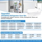 [2 PACK] UPGRADED 240356402 Refrigerator Door Bin 240356402 door bin 2 PACK Product Details Manufacturer: ALVAR Part Number: 240356402 Item Weight: 2.99 pounds Product Dimensions: 15.38 x 6.65 x 5 inches Country of Origin: China Item model number: 240356402 refrigerator door bin Color: 240356402 door bin 2 PACK Style: Crafted with high-quality Suitability and Durability materials, this door bin seamlessly fits into your Frigidaire refrigerator, providing ample storage space for beverages, condiments, or snacks. Its sleek and practical design complements the interior of your fridge, while the sturdy construction ensures long-lasting performance. Maximize your refrigerator's efficiency and enjoy convenient access to your favorite items with the Frigidaire 240356402 Door Bin. frigidaire door shelf replacement; 240356402 frigidaire door bin;frigidaire replacement door shelf; frigidaire shelf replacement; frigidaire fridge door shelf replacement; frigidaire refrigerator door shelf; frigidaire door shelf; frigidaire replacement shelf; frigidaire replacement shelves; frigidaire refrigerator parts -----100% Quality of Service - Suitability and durability are your first choice when you are concerned about refrigerator replacement 240356402 shelf bin parts. We use rigorous testing to ensure the suitability of our products for buyers' refrigerator shelves. All refrigerator replacement shelves are 100% safety tested to ensure consistent quality you can trust. Material: Upgraded Food Grade Material Voltage: 115 Volts Special Features: frigidaire gallery door shelf replacement Good toughness No breakage Usage: frigidaire door shelf replacement / frigidaire replacement door shelf/ frigidaire replacement shelves Included Components: 2 x 240356402 frigidaire door shelf ;2 X Soda Can Organizer Batteries Included?: No Batteries Required?: No 【240356402 Refrigerator Door Bin- Compatibility Models】240356402 frigidaire shelf replacement fits Frigidaire Refrigerator parts-Model Reference: LFSS2612TE0, FFSS2615TE0, LFSS2612TF0, LFSS2612TF2, LFSS2612TF4, LFSS2612TP0, FFSS2615TS0, FFSS2615TS2, FFSS2615TS5, FGHS2655PF0, FFSS2615TP0, FGHS2631PF4A, LGHX2636TF0, LFSS2612TE2, LGUS2642LF1, FGHS2655PF, LGHX2636TFB, LGHX2636TF5, FGHS2631PF0, LFSS2612TE2, LFUS2613LE0, LFSS2612TP5 door shelf bin etc. To save your time and avoid making a purchase mistake, make sure the model matches before you buy. 【High Quality Material - Features of Sturdy & Durable】240356402 Frigidaire replacement shelves made of Upgraded Food Grade Materials and advanced technology, Sturdy and safe excellent stability and load-bearing capacity, meet withstand frequent use and temperature changes inside the refrigerator. Easy Installation, designed for seamless installation, have undergone multiple rigorous tests to accurately measure its size, ensuring align perfectly with the refrigerator's slot, fits perfectly and works great.
