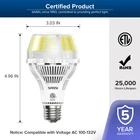 Product Description Scientific Design - providing a healthier, safer and more reliable light source! Previous page Next page Advantages of SANSI Bulbs More Excellent Features How to Determine How Many Lumens You’ll Need to Properly Light Your Space? SANSI LED Light Bulb 250 Watt Equiv 27W 2-PACK 5000K 4000lm Bright Non-dimmable E26, CRI80+, ETL Certification, 270° wide light angle Bright & Efficient: Compared with other LED bulbs, SANSI's highly efficient light bulbs can provide 4000 lumens using only 27 watts of power, equivalent to 250W incandescent bulbs. Based on 3 hours per day usage, save up to 87% electricity,annual estimated cost $2.95. Flicker-Free: Adopting high light transmission optical lenses, up to 156 LED chips can not only provide you and your family with the light source they need daily but also provide a healthy living or work environment. No flickering, no noise. Patented Ceramic technology: SANSI's patented technology replaces the traditional Mcpcb the aluminum substrate with a non-conductive ceramic heat sink, directly soldering the LED chip on the ceramic heat sink, effectively reducing the system thermal resistance between the LED PN junction and the surface of the heat sink,resulting in faster heat conduction and higher product reliability, making SANSI's bulbs perform with higher light efficiency. Safe and Reliable: The lamp body is made of special ceramic material and the flame retardant grade reaches grade V0; the reinforced insulation structure means no risk of electric shock, its safer; the whole shell material reaches the WF2 anti-corrosion grade, which is more reliable and durable; The hollow design is good for heat dissipation. Guarantees: ETL listed, quality and safety verified, 22.5 years LED bulb lifespan, 5 years warranty. Long lifetime and 5 years warranty: Long lifespan: 25,000 hours VS 1,000 hours ( for CFL bulbs). 5-Year Warranty: contact us if you have any problems. Wide Applications: A21 shape with the E26 base, easy to install. Ideal for the home, kitchen, garage, warehouse, basement, mall, barn, office, school, hospital, shopping mall, workshop, logistic center, stadium, hotel, church, studio, GYM, etc. Pleasant to your eyes: Flicker-free and instant-on lighting for eye care, natural daylight 5000K to give off a bright quality light without harsh glares, and CRI80+ to provide true color temperature experience, all are pleasant on your eyes. Customer Notice: Please turn off the power before installing or changing assembly parts. Ideal for both indoor and protected outdoor fixtures. Forbidden to be used in enclosed fixtures. Super Bright 4000 high lumen LED bulbs, means 148 lumen/watt output 270°wide beam angle provides an all-around light distribution Excellent Performance Money-Saving: estimated cost 3.25 dollars per year (based on 3 hrs/day) 3000K warm white comfortable glow provides no harsh-glare healthy light CRI 80+, to see all colors the way they are supposed to be seen Attention Please do not use it in a totally enclosed fixture Please do not use it with a dimmer Please do not use it in a high humid environment Please do not touch the bulb with bare hands when working, since the heat is all transferred to the ceramic body to keep the power supply cavity and LED chips cooling