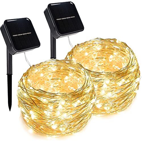 2 Pack 39.4 FT Outdoor Solar Christmas String Lights in Warm White for Festive Illumination and Energy Efficiency