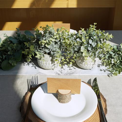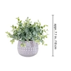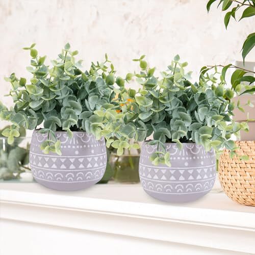 Return Policy Fast Delivery Trusted seller 2 Pack Small Potted Plants Faux Eucalyptus in Gray Ceramic Pots Artificial Greenery Potted Plants 7.1" Tall for Farmhouse Table Mantel Shelf Bathroom Kitchen Office Desk Décor Product Description Quantity: Package includes 2 small faux eucalyptus potted plants. Each faux eucalyptus plant is nestled in a textured geometric pot, with sort of a natural pebbles filling to make them look even more realistic. You can also fluff out these artificial plants to make them look more full and lush. And use these faux eucalyptus plants to add so much life to an area of your home or office! Color: Artificial eucalyptus plants are two-tone green with a light powdery finish. They sit in gray round pots with white geometric designs which for a chic boho look. Featuring elaborate carved geometric detailing and matte gray finish, these sophisticated concrete planters highlight the artificial green plants set inside and can complement to any decorating style. These faux eucalyptus in pots will create a warm and cozy atmosp to any setting. Size: The total height of these artificial potted eucalyptus plants is appr. 7.1" tall and the total width is appr. 6.7" wide. Each cute geometric concrete pot is about 3.6" wide and 2.7" tall. The perfect small size makes these pettie plants the great accent plants on small spaces such as an office desk, coffee table, bathroom shelf, windowsill, and countertop. They look pretty whether displayed together or on their own. Material: Faux eucalyptus plants are made of plastic and look lifelike in color and texture. These planters are constructed of concrete and the patterns are carved upon the surface. And three small anti-friction pads are added to the bottom of the planter to prevent scratching your tabletop. No watering or additional maintenance is required to keep them looking fresh and green. Artificial eucalyptus greenery potted plant with modern geometric embossed pattern concrete pot for your home, office, or any settings. They look great on your coffee table, mantel, dining table, console table, office desk, floating shelf, kitchen counter, bathroom shelf, windowsill, nightstand, end table, dresser, living room, bedroom, apartment, and low light areas. They are also a great gift choice for housewarming, birthday, holiday, Mother's Day, Valentine, wedding and more. Shipping Returns Payment Shipping Shipping is FREE to all addresses other than APO/PO boxes in the lower 48 states. All our stock ships from US-based warehouses. Shipped via USPS or UPS (depending on location and package weight) Unless stated otherwise, all orders will ship within 24-72 hours of your payment being processed. Check our feedback to see the great reviews of FAST shipping we offer. Returns Seller does not accept returns Payment We currently accept payment via eBay managed payments only. Once payment is cleared, we will dispatch your shipment within 1-3 business days. Please refer to the "Shipping" tab for more information regarding shipping speed to your destination.