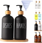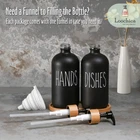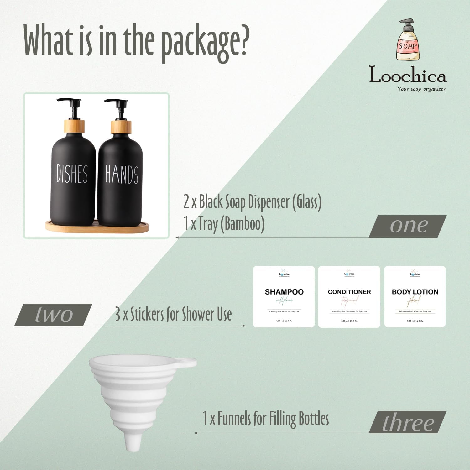 Business is our speciality NEW 2 Pack Black Glass Soap Dispenser Set with Tray, Hand and Dish Glass Soap Dispensers for Kitchen Sink, Matte Black Soap Dispenser Suitable for Kitchen Sink, Rustic Kitchen Décor FEATURES HANDS & DISHES Black Dispensers For Kitchen Use - Bottles contain Hands and Dishes marks on the bottle. If you are having problems mix up or get asked “Which Soap is Which?", this would solve this problem well. The label is not only good for distinction glass soap dispenser with pump but also looks elegant. VERSATILE & REUSABLE for BATHROOM USE - Each package comes with 3 stickers-"Shampoo", "Conditioner" and "Body Lotion". Our soap dispensers can be changed to Bathroom/Shower use by covering marks with our stickers. PREMIUM QUALITY & DURABLE- This soap dispenser set is made of thick quality glass, matched with a bamboo soap dispenser pump and bamboo dish soap tray. Our soap dispensers are durable for years. Tray will make sure bottles stay in its place. FARMHOUSE STYLE For Special Decoration- These dish soap dispensers for kitchen/bathroom are both decorative and practical. Whether you're looking for any farmhouse decor for the kitchen or farmhouse soap dispenser, this hand and dish soap dispenser set adds that special touch to everyone's kitchen. Extra Funnels to Filling the Bottle - Having problems filling soap dispenser bottles? Each package come with one extra funnels, which would help filling or refilling bottle with different liquids. Get our products and find it out! Product Description HANDS & DISHES For Kitchen And Bathroom Use Bottles contain Hands and Dishes marks on the bottle. 3 Stickers Included for Bathroom/Shower Use Package come with 3 Stickers: Shampoo, Conditioner, Body Lotion. If you want to use these bottles at bathroom, you can simply cover the lables with those stickers Funnel is included for filling the bottle Each package comes with one funnel. No more worrying about this type of issues. Durable Plastic Pump with Bamboo Design Extra liquid per press Stainless Steel Pump Core for longer use. Step 1 Hold the base of the pump mechanism just below the clover, and the pump head at the same time. Step 2 Turn the pump head conterclockwise to open up the pump. Pump Use Instuctions 1 Step 1 2 Step 2 Glass soap dispenser comparison table Add to Cart Add to Cart Add to Cart Add to Cart Add to Cart Add to Cart Customer Reviews 4.4 out of 5 stars 854 4.4 out of 5 stars 30 4.4 out of 5 stars 30 4.4 out of 5 stars 854 4.4 out of 5 stars 854 4.4 out of 5 stars 854 4.4 out of 5 stars 854 Price $23.99 $ 23 . 99 $19.99 $ 19 . 99 $17.99 $ 17 . 99 $19.99 $ 19 . 99 $19.99 $ 19 . 99 $19.99 $ 19 . 99 — Number of bottles Two Two Two Two Two Two One Color Black Purple Sage Green Black Amber Clear Black Bamboo Tray ✔ ✔ ✘ ✘ ✔ ✔ ✘ Funnel Included ✔ ✔ ✔ ✔ ✔ ✔ ✔ Sticker Included ✔ ✔ ✔ ✔ ✔ ✔ ✔ Item model number LLCSD Unit Count 2.0 Count Number of Items 2 Color A03-2 X Black Country of Origin China Material With Bamboo Tray Material Type With Bamboo Tray Number of Sets 2 Item Weight 1.57 pounds Shape Round Product Dimensions 3.94"L x 7.48"W x 7.8"H Manufacturer Direct 7.48 "h x 3.94 "h x 7.8 "h. Weight: 1.57 lb Ask us anyhting Free shipping PAYMENT We accept all payments via Ebay using Credit Cards , PAYPAL , Apple Pay and many others SHIPPING We are always working hard to ensure your package arrives as soon as possible. Please understand that some factors like weather, high postal traffic, and the performance of shipping companies are outside of our control.