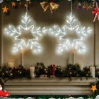 The large candy&bell window light adopts a combination of multiple color LED lighting designs, making the windows emit quiet light and adding a Christmas atmosphere to many places such as the living room, bedroom, corridor, and store. You will receive: 2 X window lights 4 X hooks 2 X battery boxs 2 X USB data cables Family Christmas window decoration: The large snowflake window lights adopt a blue LED lighting combination design, making the windows emit quiet light and adding a Christmas atmosphere to many places such as the living room, bedroom, corridor, store, and so on. Two power supply modes: powered by 3 AAA batteries (not included), with low power consumption. When replacing the battery, simply slide out the battery door and you can easily replace it. You can also use a USB data cable to provide you with a long-lasting and stable power supply. Best hanging Christmas lights:Classic Christmas shaped colored lights, without unnecessary worries or doubts when choosing gifts, can be used as holiday gifts, housewarming gifts, or birthday gifts. These decorative colored lights will become the best choice for family, friends, relatives, or colleagues. Reliable material: The iron frame structure makes the lighting fixtures more reliable and elegant, and it won't easily break down after long use; The LED is firmly tied to the frame, and the snowflake lights adopts high-end manufacturing technology, making it a better choice than plastic lights. Package includes: Christmas snowflake window decoration includes 2 snowflake lights, 4 transparent hooks, each snowflake light comes with a battery box (excluding batteries), you will be able to decorate the house and surprise your family and friends every year.
