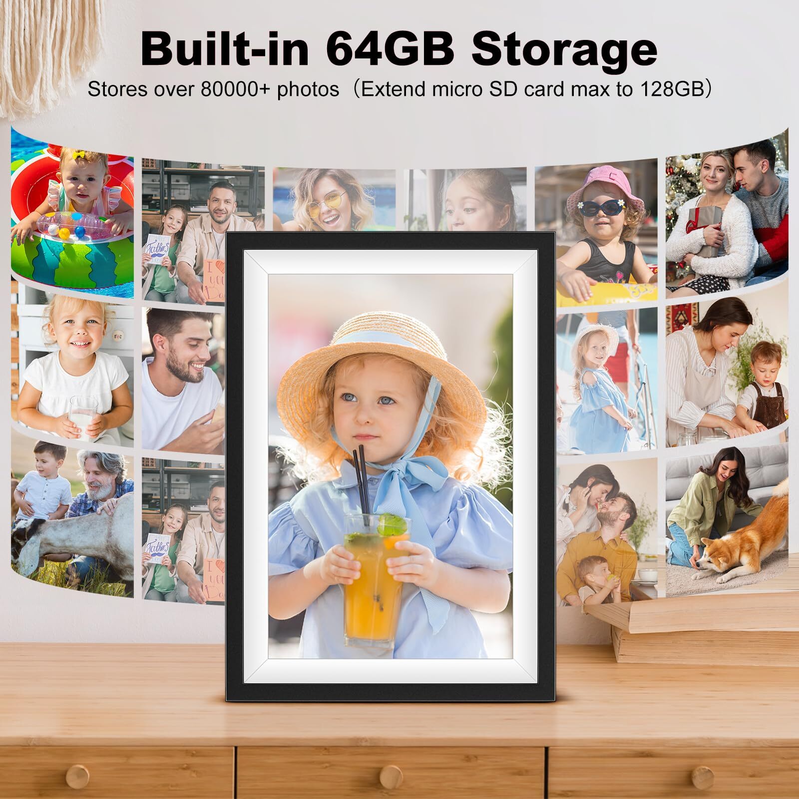 【64GB Built-in Large Storage】 Built-in 64GB memory, the digital photo frame can store approximately 80,000 photos.The picture frames with 2GB RAM makes the digital frame runs more smoothly. In addition, this smart wifi frame can also supports Mirco SD card import and export of photos or videos, making it easier for you to manage your photo album. 【Private and Secure Sharing Photos and Videos】 Connecting Wi-Fi, this smart picture frame can transfer photos and videos around the world through frameo APP. Frameo is compatible with iOS and Android, offering full control, privacy, and security. 【10.1 Inch IPS HD Touch Screen】 This 10.1 inch digital picture frame is equipped with high-quality HD 1280*800 Resolution IPS touch screen which guarantees wide viewing angles and precise color reproduction.The electronic picture frame also has a variety of slideshow modes, you can play photos or videos sequentially or randomly.With the auto-rotate function, you can place the smart photo frame in portrait or landscape mold and it will automatically adjust the orientation of the photo to fit the frame perfectly. 【Warmest Present to Your Loved One】The frameo digital frame wifi allows you to wirelessly transfer photos/videos to the frame from anywhere in the world. electronic photo frames are easy to operate and perfect for older family members who don't use social media but want to stay in touch with distant relatives. It will be the warmest present for birthdays, weddings, graduations, Valentine's Day, Mother's Day, Father's Day, Christmas and Thanksgiving Day. 【No Risk Purchase】 The factory has strict standards for all stages of production, and each product passes a quality inspection to ensure that our digital photo frames are operating flawlessly before delivery. We provide 1 year manufacturer service and Lifetime Technical Support. 【Special Illustration】Frameo+ is value-added services, it will charge monthly to get 4 extra features such as 1.Send up to 100 photos at once.(regular acount can send 10 photos at once) 2.Send up to 2 minute video.(regular acount can send 15sec.) 3.See frame photos remotely in the Frameo app on your phone. 4. Cloud backup. But Frameo app not charge, please don't worry, it does not affect the use of the picture frame if you don't choose Frameo+. Please don't hesitate to contact us if you have any questions. Warm Note: digital picture frame can only transfer photo or video via USB cable, can't work with USB flash drive.
