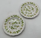 This listing is for a set of 2 vintage Sears Petite Flora Ironstone salad plates, measuring 7 5/8 inches in diameter. The plates feature a floral pattern with white, yellow, and green colors, suitable for all occasions. Made in Japan, they are dishwasher and oven-safe. This French Country-inspired design is perfect for adding a touch of countryside charm to your table setting.