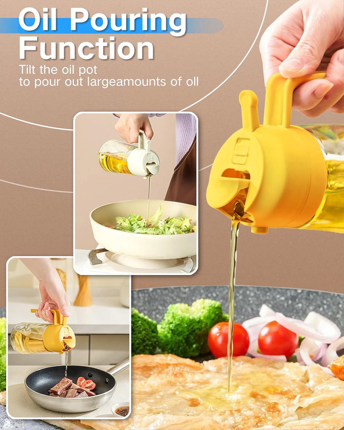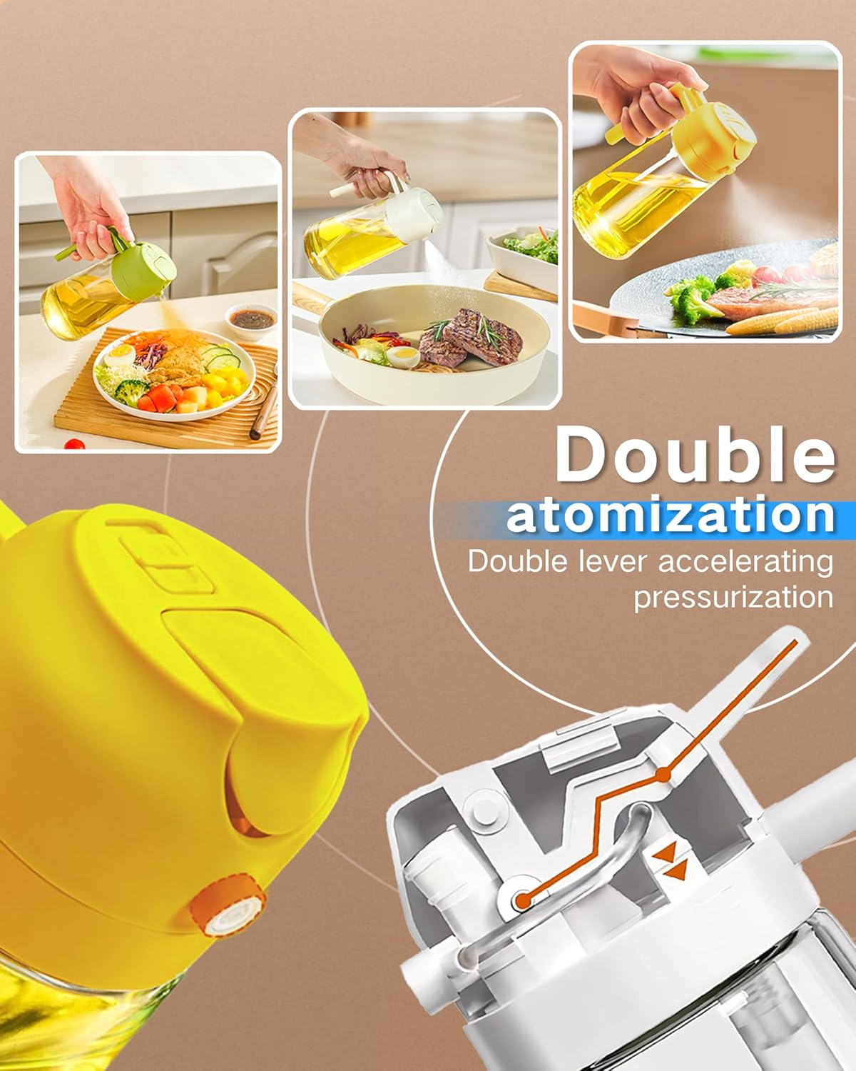 This 2-in-1 oil dispenser and sprayer is a game-changer in the kitchen! The 17oz glass bottle feels sturdy and looks sleek with its frosted finish. I love how easily it switches between pouring and spraying—perfect for cooking, salads, and air frying. The spray nozzle gives a fine mist for even coating without wasting oil. It’s become my go-to for healthier cooking!