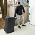 (2 pack) Hyper Tough 45 Gallon Wheeled Heavy Duty Plastic Garbage Can, Attached Lid, Black About this item RUGGED WHEELS: Built tough, these wheels make for smooth transport while the container is in use. Perfect for outside use on your patio, deck or in your garage. Product Dimensions: 26.090 in. L X 21.690 in. W X 33.700 in. H Large molded pass through the handle Easy to clean plastic design NO BREAK: Made of polypropylene, this can is able to withstand the rough use. Click lock lid BOTTOM HAND GROVE: For easier lifting and pouring. Whether used for your weekly trash or cleaning the yard, the handle grove gives you peace of mind knowing this trash can will do its job. Specifications Brand Hyper Tough Garbage Can & Wastebasket Type Garbage Cans Volume Capacity 45 gal Material Polyproplene Color Black Shape Square Number of Compartments 1 Features Wheeled Items Included Lid Assembled Product Weight 10.25 lb Recommended Location Outdoor, Indoor and Outdoor Recommended Use Household Manufacturer United Solutions Manufacturer Part Number TI0108 Model TI0108 Assembled Product Dimensions (L x W x H) 26.09 x 21.69 x 33.70 Inches
