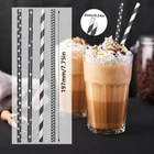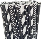 200 Black Straws, Biodegradable Black and White Paper Striped Straws for Birthdays, Coffee, Cocktail, Lemonade, DIY Decorations, Party Supplies, Weddings, New Year, Halloween, Christmas