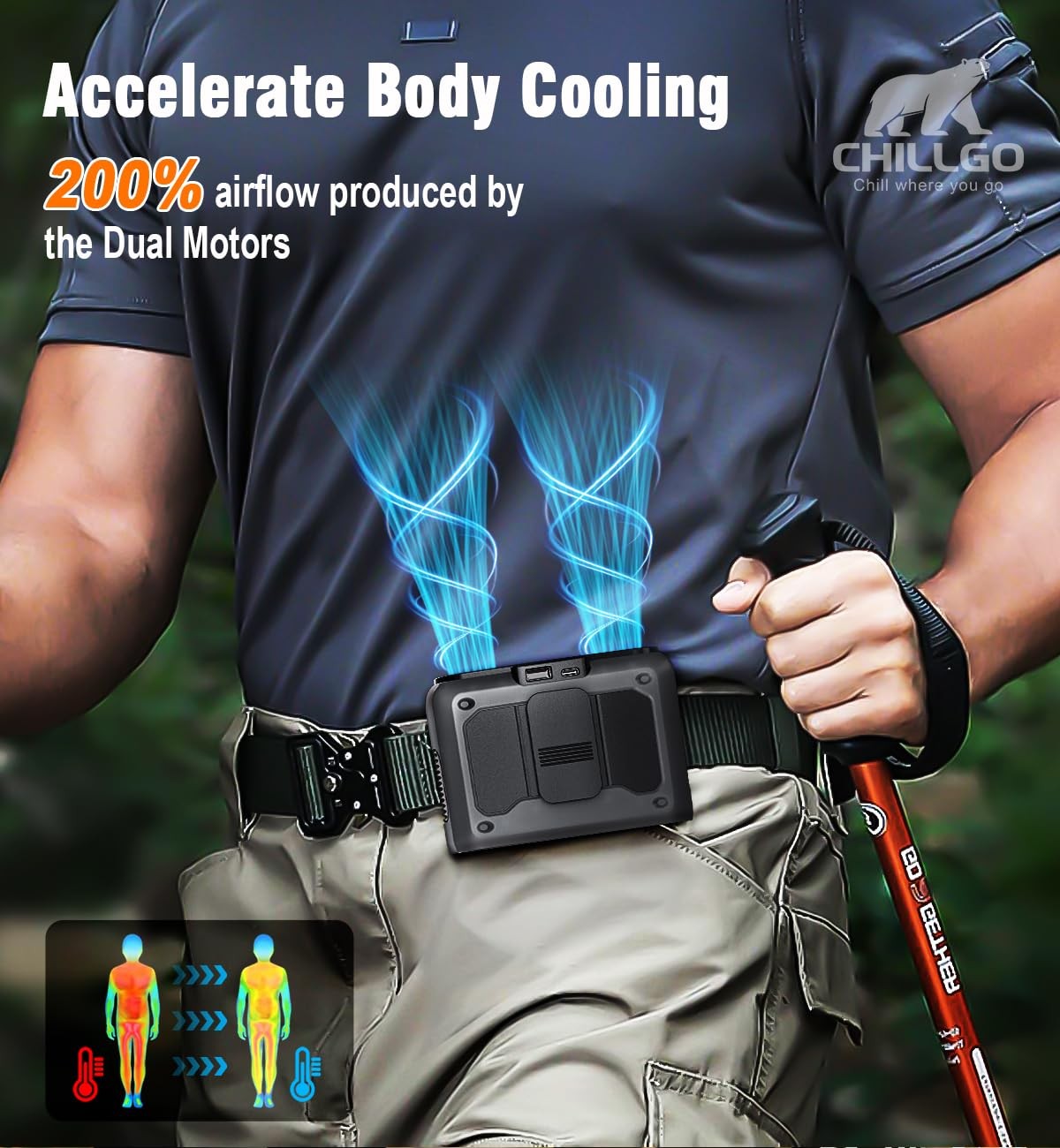 Introducing our 5-in-1 Dual Motor Fan, designed for ultimate cooling comfort! Powered by strong dual motors, it delivers 2-4X faster wind speed, ensuring a refreshing breeze like never before. The innovative airflow channel, with a bottom air inlet and top outlet, provides smooth, superior wind feel for an exceptional experience. Thanks to quick charge technology and a large battery, enjoy long-lasting power without frequent recharges. The high-quality silicone guard offers robust protection against drops and shocks, ensuring durability. This portable, multi-functional fan clips to your waist, hangs around your neck, or is held in your hand, adapting to your needs. It even supports reverse charging in emergencies! With elegant packaging, a detachable strap, charging cable, and detailed guide, it's perfect as a gift or personal use. Experience the perfect blend of style, functionality, and convenience with this must-have portable fan! Dual Motors, Strong Breeze - Powerful dual motors, this portable waist fan significantly enhanced wind speed: Powered by dual motors, this fan is durable. With an upgraded airflow channel, the wind speed can reach 2 - 4 times stronger, providing a more refreshing experience