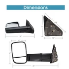 Product Description Detailed description of the product Specifications : Condition New Number Of Pieces 2 Fold Away Manual Fold Warranty 1 Year Color Chrome Location Passenger Right + Driver Left Side Features: LED Turn Signal Light Power Adjustment Mirrors Heating Element to Defrost Mirrors Manual Fold Up Arms Puddle Light Manual extended telescoping wide angle mirrors (provide a better angle and parking in tight spots) Fits: 2002 2003 2004 2005 2006 2007 2008 Dodge Ram 1500 Towing Mirrors 2003 2004 2005 2006 2007 2008 2009 Dodge Ram 2500 3500 Towing Mirrors Note : These mirrors will only work properly on vehicles with these exact options. If your vehicle does not have the options listed, these mirrors may not function properly. No installation guide. Professional installation is highly recommended. In the event the item should fail due to manufacturing defects during intended use, we will replace the part by free.(1 Year Warranty) If you encounter any problems, please contact us and we will provide you with solutions. Thank you! Payment Shipping Returns Contact Us PayPal is our preferred method of payment for all of our eBay sales. For customer service please contact us via eBay MessagesImmediate payment via PayPal is required for all Buy It Now items. If you need special arrangements, please contact us through eBay messages. Generally, all goods will be shipped within 24 hours after the payment on the working day (except for goods sent from China). If you want to cancel the order or change the address, please contact us within 6 hours after payment, otherwise we will not be responsible. It takes 3-5 working days for logistics and transportation to be delivered. If you are not satisfied with your purchase, you may return it, for a refund or replacement - subject to the following: Contact us through eBay messages or the returns link to receive a Returned Merchandise Authorization (RMA) number to ensure proper handling of the return and/or replacement. In order to be eligible for a full refund, less shipping expenses, your returned merchandise must be in its original new condition, as shipped, with all packaging, manuals, and paperwork intact and unaltered. Items which have been opened are returnable, however they will carry a restocking fee. If that product is returned for a refund, the shipping expenses incurred, will be deducted from the refund. If an item is refused, the carrier bills us for shipping both ways, and these expenses incurred on your behalf need to be deducted from your refund If you have a question about a part you should contact us before buying.And If you have any questions after purchase, please contact us and we will provide a satisfactory solution. Payment PayPal is our preferred method of payment for all of our eBay sales. For customer service please contact us via eBay MessagesImmediate payment via PayPal is required for all Buy It Now items. If you need special arrangements, please contact us through eBay messages. Shipping Generally, all goods will be shipped within 24 hours after the payment on the working day (except for goods sent from China). If you want to cancel the order or change the address, please contact us within 6 hours after payment, otherwise we will not be responsible. It takes 3-5 working days for logistics and transportation to be delivered. Returns If you are not satisfied with your purchase, you may return it, for a refund or replacement - subject to the following: Contact us through eBay messages or the returns link to receive a Returned Merchandise Authorization (RMA) number to ensure proper handling of the return and/or replacement. In order to be eligible for a full refund, less shipping expenses, your returned merchandise must be in its original new condition, as shipped, with all packaging, manuals, and paperwork intact and unaltered. Items which have been opened are returnable, however they will carry a restocking fee. If that product is returned for a refund, the shipping expenses incurred, will be deducted from the refund. If an item is refused, the carrier bills us for shipping both ways, and these expenses incurred on your behalf need to be deducted from your refund Contact Us If you have a question about a part you should contact us before buying.And If you have any questions after purchase, please contact us and we will provide a satisfactory solution. Related Products Tow Mirrors Power For 2015 2016 2017 2018 Dodge Ram 1500 2500 LH+RH Side Chrome Pair Tow Mirrors Power Heated Arrow Signal Fits 2010-2019 Ram 2500 3500 Chrome Pair Tow Mirrors Manual Fold Fits 2006 2007 2008 Dodge Ram 2500 3500 4500 Chrome Piar Towing Mirrors Manual For 2006 Ram 1500/2500/3500 Left+Right Side Chrome Pair Towing Mirrors Power Signal Light For 2003-2009 Dodge Ram 2500/3500 Black Heated √ √ NO √ √ Power √ √ NO √ √ Turn Signal Light √ NO NO NO √ temperature sensor √ √ NO NO NO Puddle Light √ √ NO √ NO Arrow Signal Light NO √ NO √ √ housing color Chrome Chrome Chrome Chrome Black folding Manual Manual Manual Manual Manual fit for 09-18 Ram 1500 2500 3500 4500 5500 09-18 Ram 1500 2500 3500 4500 5500 02-08 Ram 1500 03-09 Ram 2500 3500 02-08 Ram 1500 03-09 Ram 2500 3500 02-08 Ram 1500 03-09 Ram 2500 3500 [22 Pin Plug] On Nov 8, 2024 at 09:10:34 PST, seller added the following information: