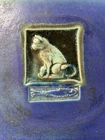 This rare 2003 Michael Cohen ceramic tile hot plate trivet features a delightful blue cat sitting with a fish design. The square tile shape adds a unique touch to any collection, and the vintage aspect makes it all the more special. Made in Idaho, this tile is perfect for those who appreciate animal-themed decor and want to add a touch of whimsy to their home. The backstamp is impressed and the tile is from the 21st century, making it a special addition to any modern home decor. Measures 5.75” x 5.75” x 0.25” Weighs 15.5 oz