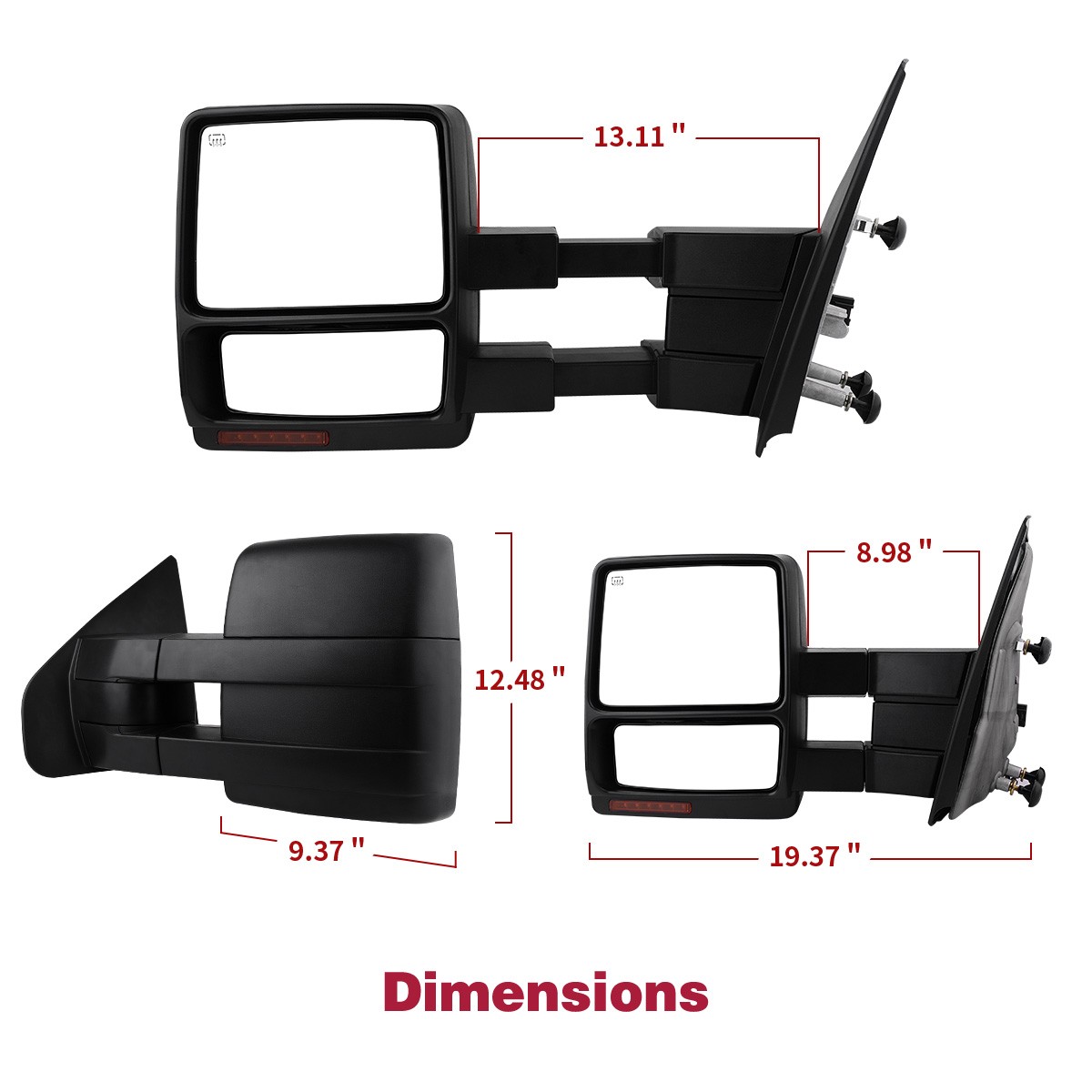 Fitment: for 2004 - 2006 Ford F-150 F150 Not Fit for 2004 F-150 Heritag Specifications: Upgrade to 2007-2014 style Power operated & Power heated plane mirror Manual telescoping & folding, dual arms Amber color LED turn signal lights Made by an aluminum base, black ABS plastic shell case Mirror size 12"×9", include plane mirror and convex mirror Manual operated convex mirror,provides a larger visual range Mirror length is approximately from 20"(closed) to 23"(extended) Easy to install, Pre-installed studs, Plug and Play Installation Provides 12 months warranty Package Include: 1 pair of driver side and passenger side tow mirrors Note: Tow mirrors will work for compatible vehicles with listed functions only. If your vehicle does not have those functions, these mirrors may not function well. Shipping The shipping rates listed are only for residential or commercial destinations in the continental 48 United States. All international sales will go through eBay Global Shipping Program.Please ask us if there are any questions. We only ship the item to the address that is sent to us at the time of checkout. Please verify the correct shipping address in your PayPal account before making your payment. If we ship your item to an old or invalid address and you are not able to locate the item, we are not responsible for shipping a replacement. Currently, we do not ship to Hawaii, Alaska, Puerto Rico,APO/FPO/PO Boxes. We use USPS, UPS & FedEx as shipping method. Payments cleared before 12 PM PST, will be shipped on the same day. Payment We accept PayPal and all forms of credit card. We will only ship to the confirmed Paypal shipping address given with the payment. We do not offer local pick up service. Return 30 days Money Back Guarantee. If any package that needs to be returned, please contact our customer service first to receive a RMA form. All return items MUST be in brand new condition. About Us Specialized in aftermarket auto parts since 2012, we source and work directly with professional manufacturers to provide the highest quality parts at the most economical prices. We also has over 5 years of shipping experience with FedEx and USPS . Our packing quality is guarantee ,item shipping is timely!