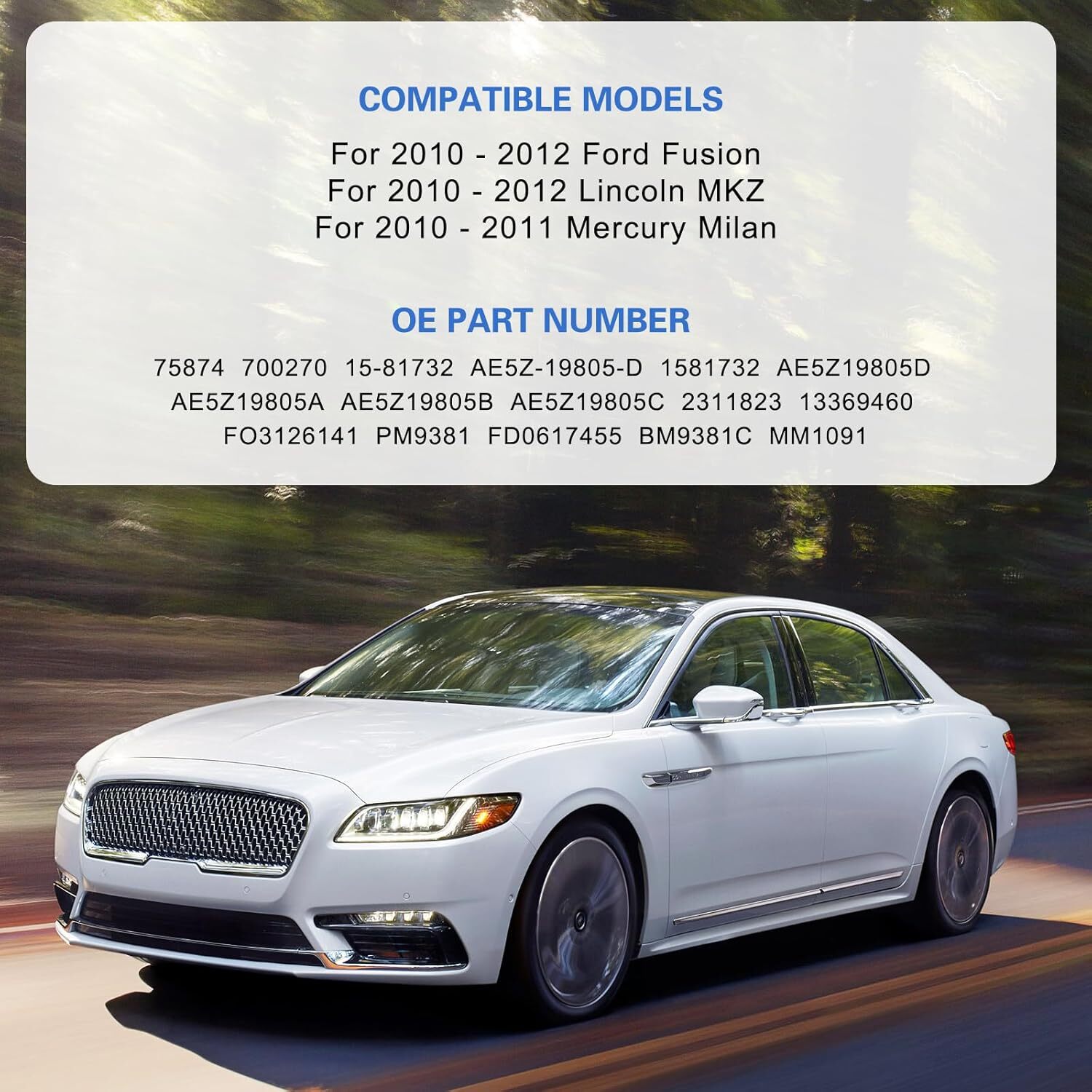 【Compatible Part Numbers】:Replacement for Blower Motor OE Number:75874 700270 15-81732 AE5Z-19805-D 1581732 AE5Z19805D AE5Z19805A AE5Z19805B AE5Z19805C 2311823 13369460 FO3126141 PM9381 FD0617455 BM9381C MM1091. 【Compatibility】:Compatible with 2010-2012 Fusion | 2010-2012 Lincoln MKZ | 2010-2011 Mercury Milan. Please confirm the compatibility according to the year/make/model of your vehicle and the OE number of the replaceable part. 【Durable and Quiet】: Built with high-quality materials, this blower motor is designed to withstand the rigors of daily use, offering long-lasting durability and reliable performance.Despite its powerful performance, this blower motor operates quietly, ensuring a comfortable and noise-free driving experience. HVAC Blower Motor Fan for 2010 2011 2012 Ford Fusion & Lincoln MKZ Mercury Milan Product Description Please check model and OE number For 2010 - 2012 Fusion For 2010 - 2012 Lincoln MKZ For 2010 - 2011 Mercury Milan Please check model and OE number OE NUMBER : 75874 700270 15-81732 AE5Z-19805-D 1581732 AE5Z19805D OE NUMBER : AE5Z19805A AE5Z19805B AE5Z19805C 2311823 13369460 OE NUMBER : FO3126141 PM9381 FD0617455 BM9381C MM1091 Payment Delivery details Terms of sales About us Contact us Payment 1.We only accept PayPal. PayPal is the only online payment method we accept. Please make sure you have a valid/confirmed PayPal account prior bidding. 2.All Paypal Payments must be Confirmed. Payment must be made within 48hrs of the auction end time. Non-Paying bidders will be reported. 3.When you get your package,maybe you will pay some charges, it's taxes for local customs,not pay to us, and the fees are depends on the customs, all buyer are same. Delivery details 1.Items will be shipped within 2 business days after payment is received. 2.We ship to your eBay address. Please make sure your eBay address is correct. Buyer takes responsibility if eBay address is wrong. 3.Import duties, taxes and charges are not included in the item price or shipping charges. Please check with your country customs office for these additional charges. 4.We shipping using UPS or USPS from our nearest warehouse to you. Tracking numbers will be emailed upon shipment. Terms of sales 1.Please feel free to email us if you have any question. 2.We appreciate you contact us via eBay message when you are not satisfied rather than open case or leave negative feedback directly. We'll try our best to solve the issue. 3.Refund will be issued once we receive your returned items. Buyer is responsible for all return shipping charges. 4.Please contact us for return process before you return the item. 5.All items for exchange or refund must be returned in "as new" condition. About us We are the responsible seller ,always provide high-quality products and best service .If you have any questions, please contact us, and will try our best to help you. Please contact us by eBay Message, and we will reply you within 24 hours. Thank you very much! Contact us We are the professional auto parts manufacturer , and provide line lock, AN hose end fittings , fuel line , fuel filter , fuel regulator , exhaust cutout , exhaust tips , exhaust muffler and so on .The quality of the product to be secured. If you have any questions or any needs , please contact us , and will try our best to help you.