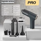 The PRO vacuum cleaner is in the state of appearance update, so some customers will receive the PRO vacuum cleaner with a new appearance. However, the internal accessories are the same as the PRO vacuum cleaner with the original appearance, so it will not affect the use. • Rechargeable Battery : No need to constantly replace batteries. Simply recharge the vacuum cleaner and use it again and again. • Wireless Convenience : No more tangled cords or limited mobility. The wireless feature allows for easy and convenient use in any room. • Powerful Suction : The 60w power and strong suction ensure that even the toughest stains are removed with ease. • Dry and Wet Use : This vacuum cleaner is suitable for both dry and wet use, making it versatile and perfect for any cleaning task. [Product Name]: Handheld Vehicle Vacuum Cleaner [Product functions]:mainly cleaning cars, vacuuming, blowing dust, blowing balloons and so on Version introduction CA0002-1: Single filter screen Without vacuum cleaner Only suitable for this vacuum 【Pro Version】 AU00020 [Product material]: ABS [Motor]: New upgrated Brushless motor [Vacuum degree]: 98000PA [Rated speed]: 35500rpm [Capacity of lithium battery]: 2 * 2000mAh [Charging mode]: Type-C charging line [Noise]: ≤ 52dB [Operating temperature]: - 20 ℃~+50 ℃ [Package list]: vacuum cleaner X1 Accessories X 6 Charging line X1 User manualX1 [weight]:550g �� Basic versions】 AU00021 [Product material]: ABS [Motor]: Ordinary motor [Vacuum degree]: 8000PA [Rated speed]: 15500rpm [Capacity of lithium battery]: 2 * 2000mAh [Charging mode]: Type-C charging line [Noise]: ≤ 52dB [Operating temperature]: - 20 ℃~+50 ℃ [Package list]: vacuum cleaner X1 Accessories X 6 Charging line X1 User manualX1 [weight]:550g Notice: 1.The recommended charging time in winter is 8 hours,Charging time in summer is 4 hours 2.During the charging process, the vacuum cleaner cannot be started. You need to unplug the power and start it again. 3..Press and hold for 10 seconds to enter the first gear of the vacuum cleaner 4.Press and hold for two seconds to change the suction power of the vacuum cleaner