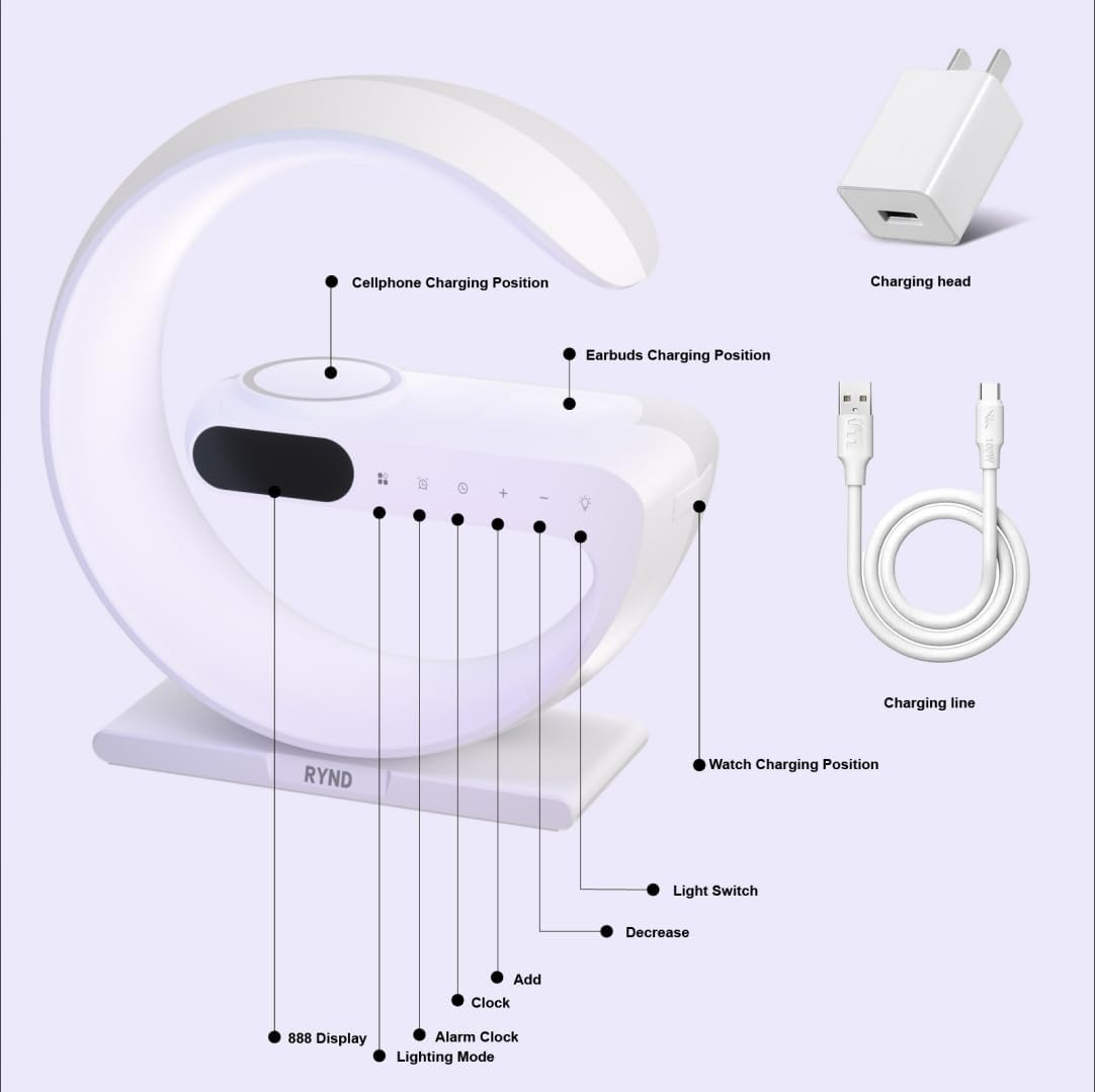 Store New Arrivals Add to Favorite View Feedback Contact 2025 Magnetic 5 in 1 Speaker Alarm Clock with Wireless Charger, Bedside Lamp with Adjustable Night Light, Gift for Family/Friends(White) Description Item model number PW0075 Room Type Bedroom Number of Items 1 Power Source Corded Electric Color White Material Plastic Country of Origin China Item Weight 2.01 pounds Age Range (Description) Adult Special Feature Snooze, Adjustable Brightness, Adjustable Volume, Wireless Charging Product Dimensions 6.93 x 1.5 x 3.15 inches Multi-Functional Alarm Clock: Our smart alarm clock charging station allows you to easily charge your smartphone by placing it on a desk lamp, quickly charging it up in 2.5 hours. This bedroom lamp also has a built-in clock and adjustable ambient LED light, allowing you to rest assured all night long. Not only can it be used with magnetic devices, but it can also be used with any device with wireless charging function Intelligent Control Ambient Light: Create the perfect atmosphere with multiple modes, click the function button next to the display time screen to switch between 7 light colour modes, sleep light, ambient light, bedside light, dazzle effect, clock, alarm and other functions at will. You can use this lamp while working, studying, reading and sleeping to suit your mood Wide Compatibility:5-in-1 multi-functional wireless charger can charge multiple devices at the same time; works with iPhone 16/15/14/13/12 series,13/12Mini,(Or other devices that only support wireless charging) iWatch Ultra/Ultra2/SE 2/SE/10/9/8/7/6/5/4/3/2, Air Pods 2/3/4 Pro/Pro 2 (with magnetic devices) together; 30W adapter for fast charging without harming your phone Refined and Reliable: Our multifunctional Apple charger has passed F-CC certification; The smart desk lamp adopts an upgraded G-shaped design, which is not only an ambient light, but also a sleep light, ambient light, bedside lamp, light display screen, clock and alarm clock, and wireless charging station Alarm Clock Charging Station: Made of ABS fireproof material, the temperature remains below 104 degrees Fahrenheit during charging; You can use this lamp wireless charger anywhere you need to charge your phone, tablet, etc., such as bedside, bedroom, living room, home, and office, very practical 15W Fast Charging Dimmable Ambient Light: Equipped with a 30W fast adapter and a magnetic wireless charger for fast and efficient charging of the device. The brightness can be continuously adjusted to gradually brighten or dim, enjoying the soothing glow brought by the night light. It is a perfect combination of practicality and innovation, making it an ideal gift for birthdays, Christmas, New Year, Thanksgiving, and other holidays What You Will Get: 15W Wireless charger; 30W adapter; user manual; USB-A to USB-C fast charging cable (1.2M) Note: The phone must have wireless charging and must be plugged in Product Description My phone’s magnetic attraction is weak and it won’t stick to the charger. What should I do? -Use a phone case that supports magnetic attachment. -If your phone case does not support magnetic attachment, please remove it before charging. What if my phone charges slowly and gets hot? -Please use the original charging head and cable that came with the packaging. -Use a charging head with a power output of 20W or higher and a fast-charging cable. What if my device doesn't charge? -Make sure your phone is a wireless charging series model (or other magnetic series: iPhone 12-16). -Please check and make sure your earbuds are compatible with wireless charging. -Please update your smartwatch system to the latest version. How do I adjust the light or alarm function? -Tap the function button next to the display time screen -Switch between the 7 light colour modes and adjust the alarm clock etc. at will. Note: Our user manual describes in detail how to use it ABOUT US We offer the best prices around on high quality products. Our E-store includes media such as books, movies, music and games while offering electronics, toys, sporting apparel, clothing, tools, general home, garden items and more. SHIPPING We are always working hard to ensure your package arrives as soon as possible. Please understand that some factors like weather, high postal traffic, and the performance of shipping companies are outside of our control. We offer free shipping to the lower 48 states and ship within 2 business days of payment, usually sooner. We do not accept P.O. Boxes. Please provide a physical address. For shipping outside of the continental USA, we only use eBay's Global Shipping Program.The item is shipped to KY and then sent to the rest of the world. International customers are responsible for all duties and taxes. Continue to check out in order to calculate costs for shipping the item to your country. Messages regarding eBay's Global Shipping Program MUST be directed at eBay EXCLUSIVELY. RETURNS We offer a 30-Day Return Policy on items which you are not completely satisfied with. You have the option for a full-refund or an exchange of the item. No returns are available on items shipped outside of the USA. PAYMENT We accept PayPal. CONTACT US This page content is yet to come Please ad us to your favorite seller and visit again later Thank You CUSTOMER SATISFACTION We try our very best to make sure every customer is completely satisfied. If there's a problem, message us! We're happy to help. WE ACCEPT