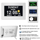 Why do I say this is the best gifts choice among the clocks? Our clocks are equipped with 7 inch large 720P HD screen and letters, which can fully display the time, year, month and day. It also has colored Sun/Moon image icons to indicate periods of day and night time, Helping to relieve their anxiety. Our improved features included: ✔ HD 170° wide-viewing screen, see it from all sides ✔Standard time and Military time mode switches (12/24 hour) ✔3 programmable themes with colored Sun/Moon icons (programmable) ✔Large AM / PM ✔Shows time of day (Morning, Afternoon, Noon, Evening, Night, Midnight, Predawn) ✔5 Preloaded Reminders, Alarms automatically stops after 15s/30s/45s/1m/3m/5m (duration adjustable) ✔Custom Message Reminders ✔Red, Yellow, Green, Blue and White Text display ✔Automatically Increases/Decreases Brightness ✔5 Languages Including English, French, German, Italian, Spanish . ✔Choice of 4 Alarm Modes: Once, Every day, Weekdays only or Weekends only, Off. ✔Instant and Easy Setup In the Giftbox You Can Find: Day Clock x1 stand x1 UL certified AC adapter x1 User Manual and Guide x1 Service: - All our products come with a 12 months protection - 16 hours/7 days active Customer Service 𝟮𝟬𝟮𝟱 𝗨𝗽𝗴𝗿𝗮𝗱𝗲𝗱 𝗛𝗗 𝗗𝗶𝘀𝗽𝗹𝗮𝘆 & 𝗩𝗼𝗶𝗰𝗲-𝗧𝗮𝗹𝗸𝗶𝗻𝗴 𝗧𝗶𝗺𝗲 𝗗𝗮𝘁𝗲: upgraded 7" large digital clock can clearly display Time, Day of Week and Date, no confusing comma on date. You can also use the unique voice feature to easily hear the real-time date announcement. Backup with 𝘀𝘁𝗮𝗻𝗱𝗮𝗿𝗱 𝗮𝗱𝗮𝗽𝘁𝗼𝗿 𝗮𝗻𝗱 𝗿𝗲𝗺𝗼𝘁𝗲 𝗶𝗻𝗰𝗹𝘂𝗱𝗲𝗱, no battery changes, much safe and convenient to use for dementia seniors, office work, or school-age kids 𝗠𝘂𝗹𝘁𝗶𝗽𝗹𝗲 𝗔𝗹𝗮𝗿𝗺𝘀 & 𝟮𝟬+ 𝗖𝘂𝘀𝘁𝗼𝗺 𝗥𝗲𝗺𝗶𝗻𝗱𝗲𝗿𝘀: never miss a special event or task again! This digital clock with day and date comes with multiple reminders for medications and drinking water; More uniquely, You can also add, edit or upload 20+ reminders for a daily, weekly or even a date-specific schedule 𝗔𝘂𝘁𝗼 𝗗𝗦𝗧 𝗔𝗱𝗷𝘂𝘀𝘁𝗺𝗲𝗻𝘁 & 𝟳 𝗧𝗶𝗺𝗲𝗿 𝗖𝘆𝗰𝗹𝗲𝘀: no need to manually spring forward or fall back, clock has automatic DST adjustment in March and November. 7 cycles include MONRNING, NOON,AFTERNOON, EVENING, NIGHT, MIDNIGHT, PREDAWN. Custom time of morning brightening and night dimming as needed 𝗦𝗹𝗲𝗲𝗽-𝗧𝗿𝗮𝗶𝗻𝗶𝗻𝗴 𝗙𝘂𝗻𝗰𝘁𝗶𝗼𝗻𝗮𝗹𝗶𝘁𝘆: You can select the time points when morning starts and clock brightens up, and select the time points when night starts and clock dims automatically according to your preference. The night sleep trainer signals when it's time to wind down, great for the memory loss seniors or young kids to keep a good sleeping routine +𝗔𝗹𝗹 𝗔𝗰𝗰𝗲𝘀𝘀𝗮𝗿𝗶𝗲𝘀 𝗜𝗻𝗰𝗹𝘂𝗱𝗲𝗱 & 𝗦𝗮𝘃𝗲𝗱 𝗬𝗼𝘂𝗿 𝗠𝗼𝗻𝗲𝘆: clocks are with Certified Safety Adaptor and Remote Control included, No need to buy seperately ! With instant plug-and-play, Large AM/PM and More than 8 colors of font combination relieves your reading difficulty ***The clock is powered by plugging in the outlet *** 𝗪𝗮𝗿𝗿𝗲𝗻𝘁𝘆 𝗘𝘅𝘁𝗲𝗻𝗱𝗲𝗱 & 𝗥𝗲𝗹𝗶𝗮𝗯𝗹𝗲 𝗦𝘂𝗽𝗽𝗼𝗿𝘁- No worry for quality issues, at you enjoy 365-Days warrenty and replacement ! clocks have more customizable options than the other day clocks, and we regularly update new features to suit your need. ***𝗔𝘂𝘁𝗼 𝗣𝗿𝗼𝘁𝗲𝗰𝘁𝗶𝗼𝗻***: the clock has memory function which automatically keeps track of time and save settings in case of power outage, no need to reset when power returns ***𝙐𝙣𝙞𝙦𝙪𝙚 𝘿𝙚𝙨𝙞𝙜𝙣*** clock has upgraded voice time date announcement (English), 10 levels customizable dimming options, configurable Sun/Moon Icons on/off display, with HD pictures playback and 10 levels alarm volumes, providing 100% joy and peace of mind