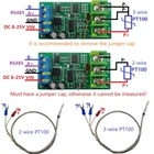 Product Name: -20-400 Celsius PT100 Thermocouple Temperature Detector RTD Sensor Tester Converter RS485 Modbus Rtu Packing list(Please select the product you need): 1 pcs PTA9B01 PT100 RS485 Acquisition module 1 pcs PT100 sensor 1 pcs Matching shell Description : PTA9B01 PT100 RS485 Acquisition module Description: Working voltage: DC 8-25V(Recommend DC 12V) Working current: 8-13MA MODBUS RTU protocol, 03 read command, 06 write command. Serial port baud rate: 9600 (default), N, 8, 1 By modifying the 485 address, up to 247 modules can be cascaded (more than 16 please use R485 repeater) Can read temperature and PT100 resistance value Adapted sensor: PT100 3-wire or 2-wire sensor Temperature measurement range: A version -20℃ to +400℃ ; B version -20℃ to +220℃ . It is recommended to select a version with a smaller range within the range that meets the measurement. Temperature measurement accuracy: 1%. Size: 60 X 30 X 16MM Weight: 16g MODBUS RTU protocol please refer to : '' PTA9B01 PT100 RS485 sensor protocol '' PT100 sensor specifications: Type: PT100 Thermocouple Probe Diameter: 6.5mm Probe Length: 30mm Probe Material : Stainless steel Cable Length: 0.5M PTFE sheath 3-Wire type Temperature -200~550°C degree Shell: Material: ABS Outer diameter: 73*36*24MM Inner diameter: 70*33*21MM Weight: 16 grams For more information, please contact us!!! Typical application: Temperature Detector Tester Thermostatic Controls Industrial Systems Consumer Products Thermally Sensitive Systems Measuring instruments Indoor and outdoor temperature measurement Temperature in vegetable garden Weather forecasting, and monitoring Temperature in Computer Room Warehouse temperature 3-wire probe wiring mode: the red wire is connected to P+, and the other two wires of the same color are connected to P- and GND (the ports are not distinguished). Note: Please remove the jumper, otherwise it will affect the accuracy 2-wire probe wiring mode: red wire connects to P+, blue wire connects to P-. Note: The jumper must be short-circuited, otherwise it cannot be measured! ! ! RS485 bus wiring diagram: