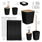 Return Policy Fast Delivery Trusted seller Bathroom Accessories Set - Bathroom Set, 20PC Bathroom Accessory Set, Black Shower Curtain Set, Toilet Brush, Trash Can & Soap Dispenser Product Description 100% Polyester Black Bathroom Accessories Set: Incorporate black bathroom decor with our coordinated bathroom accessory set for bathroom organization. Our black bathroom set with natural bamboo accents create a stylish haven. Complete Bathroom Set: Toothbrush holder, tumbler, soap dispenser, soap dish, bathroom trash can, toilet brush and holder set, and fabric shower curtain set with clear shower curtain liner and 12 shower curtain hooks. Black Shower Curtain: Our shower curtains for bathroom measure 72” x 72” and are made of durable, wrinkle-resistant polyester with a waffle texture, and include reinforced header and hook holes. Boho Shower Curtain with Shower Liner: This shower curtain with hooks includes a clear shower curtain liner with weighted magnets at the bottom to keep it in place, and 12 rust-resistant shower curtain rings. Elegant Bathroom Sets: Our bamboo bathroom accessories are easy to set up and clean, transforming your bathroom into a spa-like retreat. Shipping Returns Payment Shipping Shipping is FREE to all addresses other than APO/PO boxes in the lower 48 states. All our stock ships from US-based warehouses. Shipped via USPS or UPS (depending on location and package weight) Unless stated otherwise, all orders will ship within 24-72 hours of your payment being processed. Check our feedback to see the great reviews of FAST shipping we offer. Returns Seller does not accept returns Payment We currently accept payment via eBay managed payments only. Once payment is cleared, we will dispatch your shipment within 1-3 business days. Please refer to the "Shipping" tab for more information regarding shipping speed to your destination.