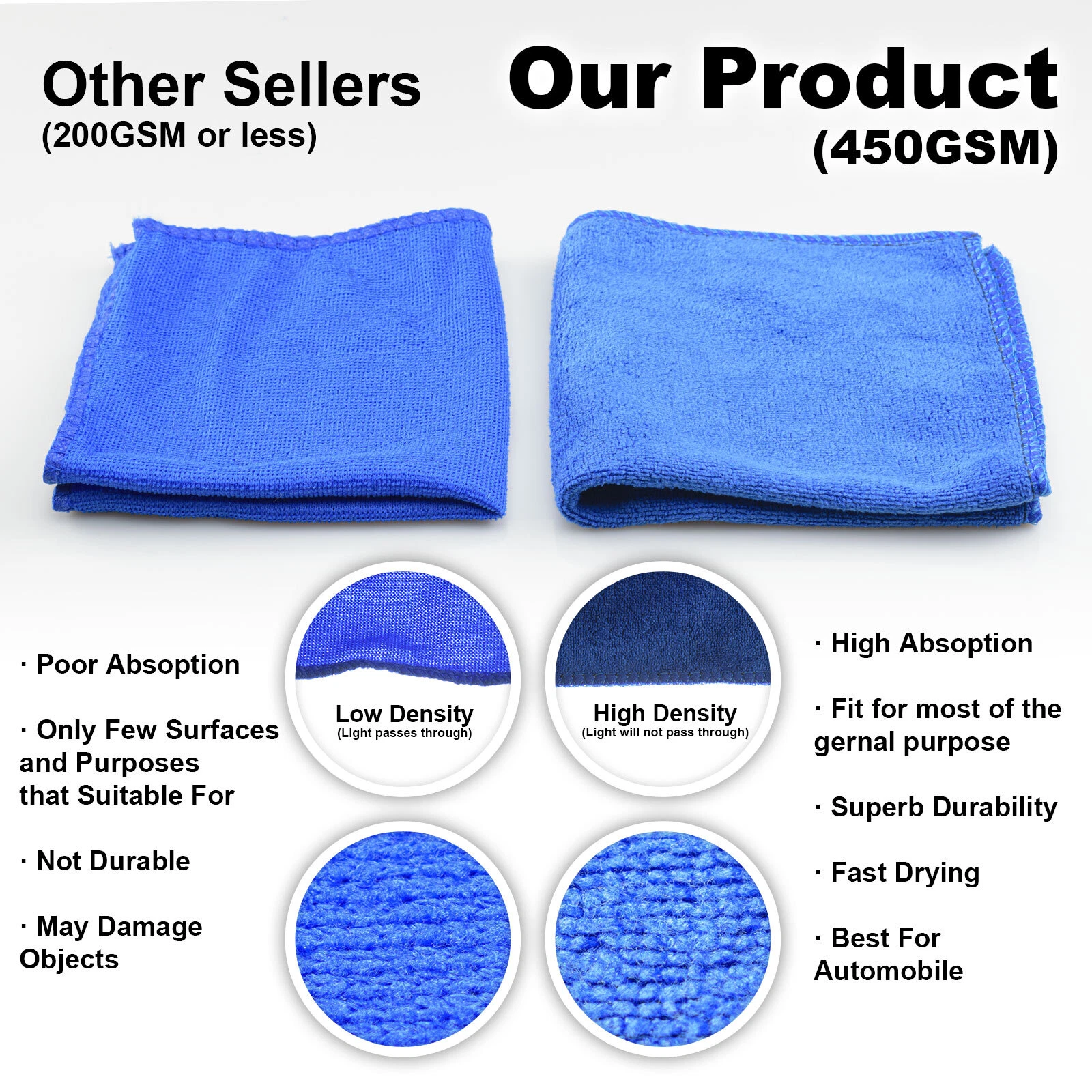 product Store Home Shipping Payment Warranty and Guarantee Other Policies Item Description Extremely effective, reusable, and washable cleaning cloth. Great for wiping household surfaces and clean your car, boat, bike, truck, and electronics, etc. Feature: 1.Scratch Resistant Technology - Will not scratch Paints, Coats, Glass, or any surface. 2.Gentle enough to be used as a washcloth for your hands and face. Highly Absorbant - Quick-Dry Design - 3.No Streaks and Lint Free. Clean Dirt & Debris without any harmful chemicals. 4.Absorbs up to 8 times its own weight. 5.Washing Machine Friendly - Can be reused Hundreds of times. Rinse and Reuse - Saving You Even More Money. 6.Low Price and Great Quality ! 7.Free Shipping ! 8.Item Size: 30cm x 30cm Package Included: 20PCS Car Polishing Detailing Towel (Bule) Item Pictures More Shipping 1.We ship to worldwide,except Hong Kong,Taiwan,Macao,China,Guemsey,Puerto Rico and we do not ship to APO/FPO, etc. 2.Item will be shipped within 3 business day on payment received. 3.Items are shipped from China using Airmail,reach most of countries within 10-20 business days. 4.sDelivery time depends on destination and other factors,it may takes up to 20 business days. Payment 1.We accept Paypal only. 2.All major credit cards are accepted through secure payment processor PayPal. 3.Payment must be received with 7 days of auction closing 4.If you have bought multiple items from us,you can send us one payment for all the items instead of paying for them individually. When you click the Pay Now button,eBay will automatically determine if there are other items you have won of purchased from us and will combine them for your review. Warranty and Guarantee 1.One year warranty!30 days money back!Buy with confidence! 2.If you are not satisfied when you receive your item,please return it within 30 days for a replacement or money back.Please contact us before you return the item. 3.If item is defective in 3 months,we will send you a replacement without extra charger,or offer refund after we receive the defective item. 4.If item is defective after 3 months,you can still send it back to us.We will send you a new one after after receiving the defective item,but you have to pay the extra shipping fee. Other Policies 1.We are not responsible for any custom duty or import tax. 2.We will leave Positive Feedback after receiving the payment.Please contact us if you are not satisfied with the item after receiving it. 3.All emails will be answered within 1 business day.If you do not receive our reply,please kindly re-sent your email and we will reply you as soon as possible. 4.Serious Buyer Only!Please place bid only if you agree with all the terms.