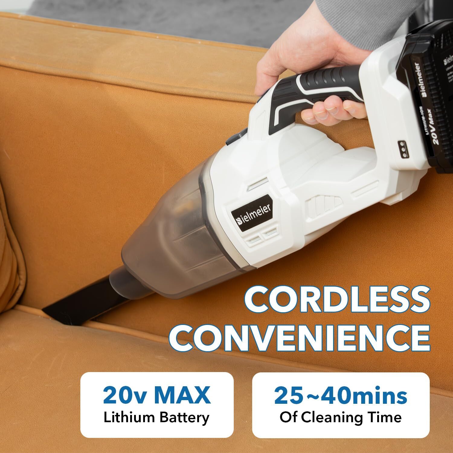 【Wet/Dry】This Cordless Handheld Vacuum Cleaner provides wet/dry cleaning capabilities. Whether you're dealing with dust and debris or spills and stains, the small shop vac with 3 nozzles and 2 washable filters can handle it all with ease. 【Powerful Suction】With an impressive suction power of 8,500 Pa, making it is ideal for quick cleanups. This cordless hand vacuum is great for quickly removing dust, hair, spills, and debris from home, Workshop, furniture, car, small shop, and boat. 【Upgraded Modle】Upgraded version Cordless shop vac is designed to be lightweight and comfortable to use, weighing in at just 2.4 lbs, reducing fatigue, and ensuring maximum efficiency during prolonged use. The upgraded switch button is easier to use. The 650ml large capacity saves time without having to stop and empty the cup frequently. 【Cordless Convenience】portable handheld vacuum offers true cordless convenience, thanks to its long-lasting rechargeable 20V lithium battery that provides 25-40mins of cleaning time. Additional batteries can be purchased for extended run time. (Available on Amazon). 【Package Contents & Warranty】dust buster kit included handheld vacuum x1, 2.0Ah Li-ion battery x1, charger x1, crevice brush x1, brush nozzle x1, flat nozzle x1, Filter x2(washable&reusable), net storage bag x1. We provide permanent after-sales consulting service and a 30-day free return policy.