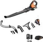 ALL-IN-ONE CLEANING TOOL: More than just a leaf blower, this versatile tool can handle every cleaning task on your to-do list. With the 9 included attachments, you can blow leaves, clear debris, sweep, dust, brush, dry—and even blow up inflatables. SAME BATTERY, EXPANDABLE POWER: This cordless leaf blower & sweeper is PowerShare compatible. The same battery powers over 140+ 20V, 40V, and 80V lifestyle, garden, and power tools in the PowerShare family. POWERFUL PERFORMANCE: Exceptional electric leaf blower power! With up to 120 mph air speed, you can blast leaves and debris beyond limits. REACH TIGHT SPOTS: This battery leaf blower is designed with a long tube and wide nozzle to reach difficult, out-of-reach spots with ease. From under-the-fridge debris to crumbs between car seats—no corner goes untouched. EASY, ONE-HANDED OPERATION: Weighing in at only 3.5 lbs. (with battery), this cordless blower is light enough to hold comfortably with one hand. INCLUDES: (1) 20V Cordless Leaf Blower, (1) Wide Nozzle Attachment, (1) Dush Brush Attachment, (1) Extension Hose & Clip, (1) Short Tube Attachment, (1) Detail Brush Attachment, (1) Inflator Nozzle, (1) Deflation Cover, (1) Dust Tube Attachment, (1) Accessory Bag, (1) 0.4Ah Charger, (1) 2.0Ah 20V Battery. Blow through every task on your to-do list with the WORX 20V air cordless leaf blower. With nine unique attachments, this cordless leaf blower becomes your all-in-one cleaning solution. Vacuum out seat cracks, sweep behind fridges, deflate pool toys, and detail your car—all with a single tool. This electric leaf blower is PowerShare compatible. The same battery powers over 140+ 20V, 40V, and 80V lifestyle, garden, and power tools in the PowerShare family. Make quick work of cleaning and clearing. Reaching an impressive airspeed of 120 mph, this battery leaf blower can blast leaves and debris beyond limits. While other blowers are limited in reach, the air leaf blower has every corner and crevice covered. It's designed with a long tube and wide nozzle to clean tricky spots like kitchen draws and cracks between car seats. All-day cleaning sprees won’t leave you worn out. Weighing in at only 3.5 lbs, this lightweight cordless blower is comfortable to hold and control with one hand while you work.