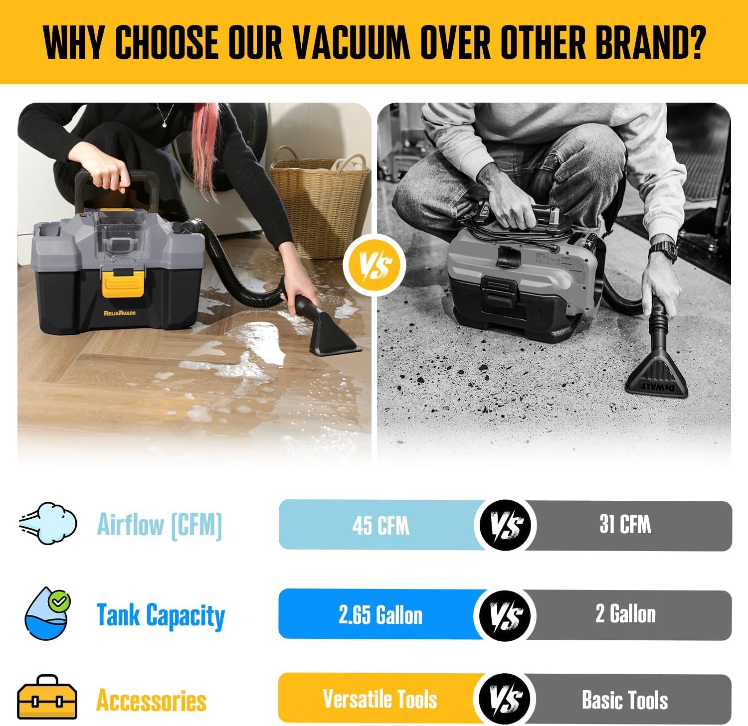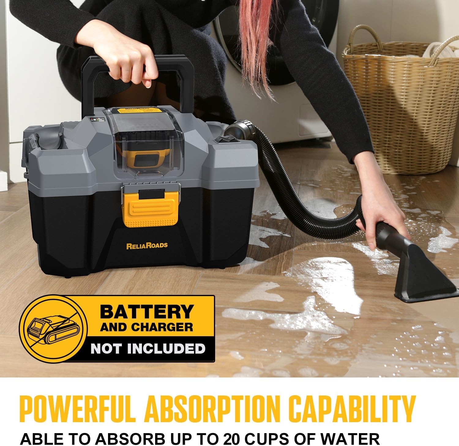 20V Cordless Vacuum Cleaner-Wet/Dry Shop Vac,2.6 Gallon Capacity,Compatible with DeWALT Batteries (Bare Tool - No Battery & No Charger),Ideal for Cleaning Car,Home Spaces,and Workshops RCSV-20 20V Cordless Vacuum Cleaner-Wet/Dry Shop Vac,2.6 Gallon Capacity,Compatible with DeWALT Batteries (Bare Tool - No Battery & No Charger),Ideal for Cleaning Car,Home Spaces,and Workshops RCSV-20 FREE AND FAST SHIPPING! About this item NOTE: Battery And Charger Not Included. Works with DeWALT 20V MAX Battery. Compatibility:The 20V wet dry shop vac is designed for compatibility with the popular DeWALT 20V Max battery system.This makes it especially suitable for users who already possess DeWALT tools.There's no need for additional investment in new batteries and chargers,as it operates with DeWALT batteries up to 5Ah and can achieve up to 30 minutes of runtime. Powerful Wet Dry Vac Cleaning Capability:With a high airflow of 45cfm and strong suction power of 12.1 Kpa,this battery vacuum cleaner can easily handle even the most stubborn wet spills or dry debris.Its 2.65-gallon dust collector capacity means you can tackle more cleaning tasks without frequent emptying,making the cleaning process more efficient and time-saving. Versatile Accessory Kit:The included cleaning tools (soft hose and connectors,multi-purpose nozzle,crevice tool,sofa brush,and extra long crevice tool),along with an efficient mini filter cartridge,enable you to effectively tackle a variety of cleaning situations and needs.From dust in crevices to crumbs on the sofa,our accessory kit makes your cleaning tasks practically limitless. Deep Cleaning Flexibility:The vacuum's hose has a 1-1/4 inch diameter and is 6.56 feet long,offering flexibility during clean-ups and allowing you to easily reach tight corners.Vacuum cleaner also comes with a blowing feature, allowing for effective removal of dust from hidden spots in the machine after using the tool.,providing a dual-purpose solution to your cleaning challenges. Durable and Portable:Equipped with a washable filter for easy maintenance,its lightweight design and convenient carry handle allow for effortless transportation between different sites, whether it's an outdoor work location or home cleaning tasks.The ability to detach the body easily opens the unit for quick disposal of debris, enhancing convenience Product We offer a 30-Day Return Policy on items which you are not completely satisfied with. You have the option for a full-refund or an exchange of the item. No returns are available on items shipped outside of the US . Shipping We offer Free Shipping to the US and ship within 2 business days of payment, usually sooner. We use UPS express shipping. That's why your products are usually delivered within 3 days . Contact We try our very best to make sure every customer is completely satisfied. If there's a problem , message us! We're happy to help. 24/7 live chat available.