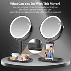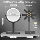 Dual Side 1x/20x Magnifying Lighted Mirror: This magnifying makeup mirror comes with 1X and 20X mirror, the 1X is suitable for daily use and the 20x magnifying mirror is suitable for delicate operations such as eyelash plucking, eye lash installation, wearing contact lenses,and removing blackheads, it's not only suitable for young women, but also the first choice of makeup mirrors for seniors and cataract patients 3 Colors Vanity Mirror: This lighted makeup mirror comes with 3 different colors and Adjustable Brightness.Long press touch button can adjusts the light intensity, short press touch button can change the color of the light, which can meet the makeup needs of different scenes and different lighting environments 80 LEDs and 2000 mAh Battery: This 20x desk mirror comes with 80 energy saving LED lights with 100,000 hours life. And most lighted mirrors on the market only have 42 or less LED counts. The battery capacity is 2,000 mAh, which provides a long use time and reduces the number of recharges Ingenious Design: The top of this mirror with lights is a 360 degree rotating double sided, you can switch between a flat mirror and a 20X magnifying mirror at any time. The base is a phone holder and you can place your phone horizontally/vertically on the mirror's phone holder to watch tiktok or makeup tutorials while applying makeup Note: When you use this 20X lighted magnifying mirror, keep your face close enough to the mirror (<5 inches) or you'll get an upside down / blurred / distorted facial pattern. Because everyone's eyesight is different, please try several times to find the most suitable viewing distance for you Product Description Double-Sided Magnifying Mirror with Light 20X Magnifying Mirror The 20X Magnification has unparalleled magnifying power to help you better perform fine make-up operations. 1X Flat Makeup Mirror 1X HD Flat Mirror is suitable for everyone's daily use, perfect for home and traveling. Makeup Mirror with Light This magnifying mirror is lighted on both sides, so no matter which side you use, you can switch between three bright and dim lights at will Products Introduction 80 LED Lamp Beads 80 LED Lamp Beads Stepless Brightness Adjustable 2000mAh Rechargeable Battery 1X&20X Magnification 360° Rotation