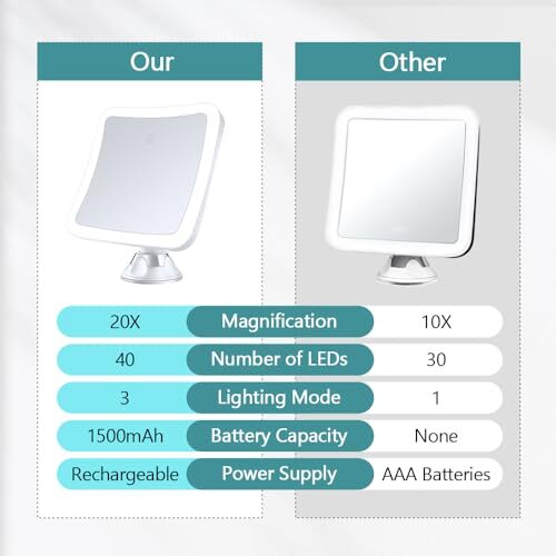 Return Policy Fast Delivery Trusted seller 20X Magnifying Mirror with Light, Lighted Makeup Mirror with Magnification,180 Rotation Vanity Mirror, Magnifying Mirror Suction Cup, Rechargeable Travel Mirror Product Description Magnifying Mirror with Light: This 20X lighted magnifying mirror with 40 LEDs, Provides a superior magnification experience and is best used for precise grooming operations such as eyebrow and eyelash plucking, acne removal, etc Easy to Use: This 20X magnifying mirror measures 7.28x6.28 inches and weighs 11.8oz.It can be easily attached to smooth flat surfaces such as tables, bathroom mirrors, tiles, and more. It comes with a ball head on the back that can be rotated 180 degrees and can be adjusted to the most suitable angle for makeup Most Suitable Users: This 20X magnifying mirror comes with a huge magnification.Ideal for make-up that requires fine manipulation and for people with cataracts and presbyopia Note: The magnification mirror of this magnifier is 20X, so you need to position your eyes 3 to 5 inches away from the mirror, otherwise the image may be blurred, inverted, and distorted Shipping Returns Payment Shipping Shipping is FREE to all addresses other than APO/PO boxes in the lower 48 states. All our stock ships from US-based warehouses. Shipped via USPS or UPS (depending on location and package weight) Unless stated otherwise, all orders will ship within 24-72 hours of your payment being processed. Check our feedback to see the great reviews of FAST shipping we offer. Returns Seller does not accept returns Payment We currently accept payment via eBay managed payments only. Once payment is cleared, we will dispatch your shipment within 1-3 business days. Please refer to the "Shipping" tab for more information regarding shipping speed to your destination.