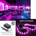 Specifications: ● Color: RGB ● Wattage: 24W ● Size of LEDs: 5050 LEDs ● Length of a tape: 20ft/ 6m ● Quantity of LEDs : 180 ● Working Voltage: 12V DC ● Dimmable: Yes ● Waterproof: No ● Frequency: 50/60Hz ● Working Temperature: -25℃~40℃ ● Input Voltage: 100-240V AC ● Battery Type: CR2025(for RF remote controller) ● Lifespan: 50,000 hrs Super Long& Safe to Use - This 20ft RGB LED light strip includes 180 bright LEDs. And the working voltage is 12V (A UL Listed Power Adaptor is included), extremely Low Heat. Touchable and safety for children. Upgraded RF Remote - 44 key RF remote controller who can be used 360° and more accurate for than IR remote, working distance is up to 40- 45ft, strong Signal even penetrate walls and doors and cabinet, has 20 Colors Options, 8 Light Modes, 6 DIY Keys. Easy Installation - Install it by yourself in seconds. Self-adhesive back with adhesive tape for safe and easy application. Also you can install it with screws(Include), UL & FCC listed for safety and quality assurance. Widely Use - The strip has excellent heat dissipation, making it much more durable. Suitable for indoor lighting and decor. Such as living room, kitchen, under cabinet, dining room, bedroom, upstairs, party decoration, stairway, wedding. Package Includes: ● 1X RGB LED strips ● 1X RF remote controller ● 1X LED signal receiver ● 12X Mounting brackets ● 1X UL Listed power adaptor Better Enjoyment: With 30 LEDs per meter, the brightness of LED bars can be improved by 90% (Max) compared to 18 LEDs per meter. The dual-panel design can effectively reduce the brightness difference between the front and the end of the light strip. Super Long& Safe to Use: This 20ft RGB LED light strip includes 180 bright LEDs. And the working voltage is 24V (A UL Listed Power Adaptor is included), extremely Low Heat. Touchable and safe for children. Music Sync Lighting: The built-in sensitive mic allows the light bar to synchronize with your favorite music. It is the perfect decoration for festivals and parties. App & Remote: The strips light has a variety of mode functions, which can be freely selected through APP control. Remote control is simple to use, a wide range of control, can meet the basic setting of the lamp. There are also mode switching buttons on the signal receiver. Standard Kit: Come with 1X RGB LED strips, 1X UL Listed power adaptor, 1X remote controller, 1X LED signal receiver, 12X mounting brackets. Please feel free to contact us with any questions you may have.
