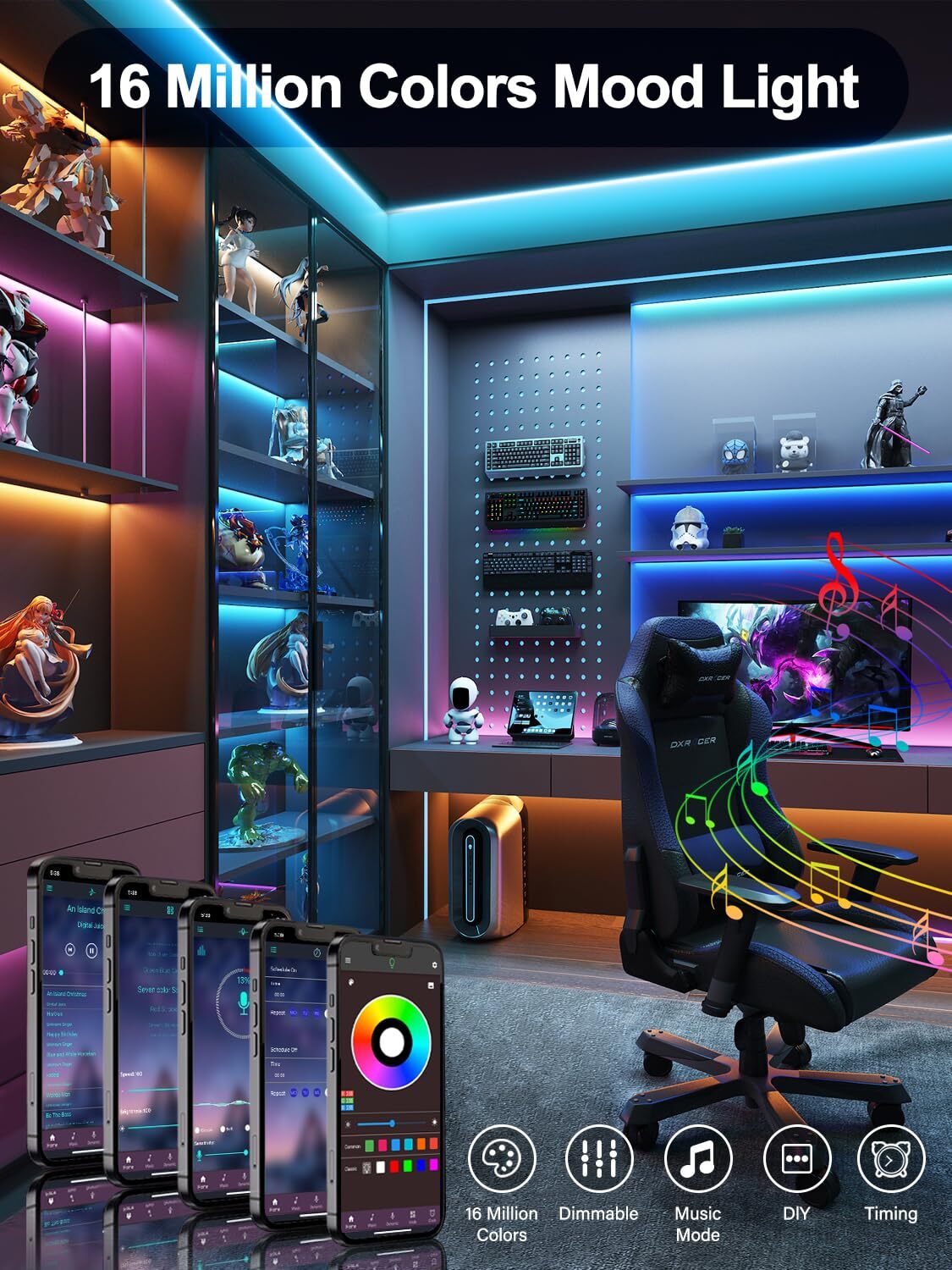 Led Lights for TV, 20ft TV Led Backlight for 32-80 Inch, Usb Led Light Strip with Remote, App Control, RGB Led Strip Lights Music Sync Color Changing Led Lights for Bedroom, Gaming Accessories Easy to Install: Just remove the adhesive and stick the led lights for TV 32-80inch on a smooth and clean surface. To ensure that the adhesive backing fully adheres to the TV without damaging the stick on tv led backlight, press the strip lights gently during installation and do not press the LEDs. (tips: Rgb led strip lights for tv is not waterproof, Please use in a dry environment) USB-powered design: usb led light strip for tv can be powered by powernank, usb charger, TV, Monitor, laptop and batteries, making tv lights easy to install in any location High Brightness & Exquisite Home Decor: upgraded TV lights that change with tv 32-80 inch with 5050 led beads, 15 beads per metre to meet your high brightness needs and reduce fatigue. Our 20ft led lights for tv is perfect for decorating TV, TV backdrop, computer monitor, tables, under bed, sofas and many other devices APP & Remote Control: You can personalise your TV led lights that sync with TV by unlocking different functions via the Mohuan app or by using the 24keys remote control. Adjust the brightness of the tv backlight according to your preference Upgraded Sync with Music: The built-in high-sensitivity music sensor allows you to sync the RGB fancy leds for tv lights behind to your favorite music. Choose from 21 Dynamic mode for strong rhythms or calm mode for more relaxed get-togethers Magical RGB Effects: A colorful of behind tv led lighting brings a strong visual impact. You can choose from a variety of lighting effects for the luces led para tv Timing: With the smart phone APP, you can have the timing function, pre-setting the appropriate time and suitable color to make tv led lights for bedroom turn on/off automatically Wide Use: The 6m led tv lights strip is long enough,Widely used on holidays and party (such as christmas, halloween, birthday, wedding, Valentine, gaming room,father's day.etc) Post-Sale: Our tv sync led lights have passed strict quality inspection, we are full of confidence in the quality of our led for tv lights. Please get in touch with us if you encounter any problems or have any questions when using our lights for tv. Our expert technical team is always ready to answer your questions and provide support