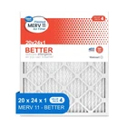 Product details Great Value known for reliable household consumable products; brings you enhanced indoor air quality at an affordable price! Our Great Value 20x24x1 MERV 11 pleated air filters reduce airborne allergens in your home to help you breathe easier. Our BETTER air filters trap indoor contaminants like dust mites, pollen, pet dander, mold spores, bacteria, microscopic allergens, virus carrier, most smoke and more. These filters are made with a moisture-resistant cardboard frame and wire supported; electrostatic media to ensure their strength. Their pleated design and larger surface area offer more space to capture airborne allergens & contaminants so you can breathe better with your pets in your home! A single filter from this value pack measures 20x24x1; which means its actual size is 19.75x23.75x0.75 – be sure to measure your HVAC return to ensure proper fit Captures and traps dust mites, pollen, lint, pet dander, mold spores, bacteria, microscopic allergens, virus carriers & most smoke Durable frame & electrostatic, wire-supported media ensure strength & rigidity 4 count value pack lasts up to 360 days You should change your pleated air filter every 90 days or sooner depending on your indoor environment Great Value products provide families with affordable, high-quality grocery and household consumable options