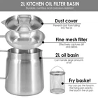 Oil Pots 2/1.5L Stainless Steel Fine Mesh Strainers Grease Container Storage Can Upgrade your kitchen with this stainless steel oil strainer pot, available in 2L and 1.5L capacities. Featuring a fine mesh strainer, it efficiently filters food particles from cooking oil, making it reusable and perfect for frying or storing grease. The multifunctional design doubles as a fry basket and oil storage container, offering convenience and versatility for home cooking. Made from high-quality stainless steel, it is durable, easy to clean, and built to withstand daily use. A practical addition to any kitchen, ideal for those who value efficiency and cleanliness in food preparation. Specification: Item: Oil Storage Can Type: Colanders & Strainers Material: Stainless Steel Size: 1.5L pot body about: 14x12.5x13.5cm 2L pot body about: 14x12.5x16cm A: 2L Oil Filter Pot: Top of pot caliber approx: 13cm / 5.1 inches Height: approx. 16cm / 6.3 inches Bottom diameter: approx. 14.5cm / 5.7 inches Total height with lid approx. 19.5cm / 7.68 inches Basket diameter approx: 11.8cm / 4.6 inches Height approx. 15cm / 5.9 inches Certification: CE / EU,CIQ Color: Silver Feature: Oil Strainer Pot with Fine Mesh Strainer Usage: Grease Container Package Included: 1 x Pc Oil Filter Pot 1 x Pc Dustproof Lid 1 x Pc Oil Strainer Grid 1 x Pc Frying Basket Drainer Grid