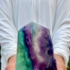 2.1LB Natural Rainbow Fluorite Obelisk Crystal Wand for Healing and Energy