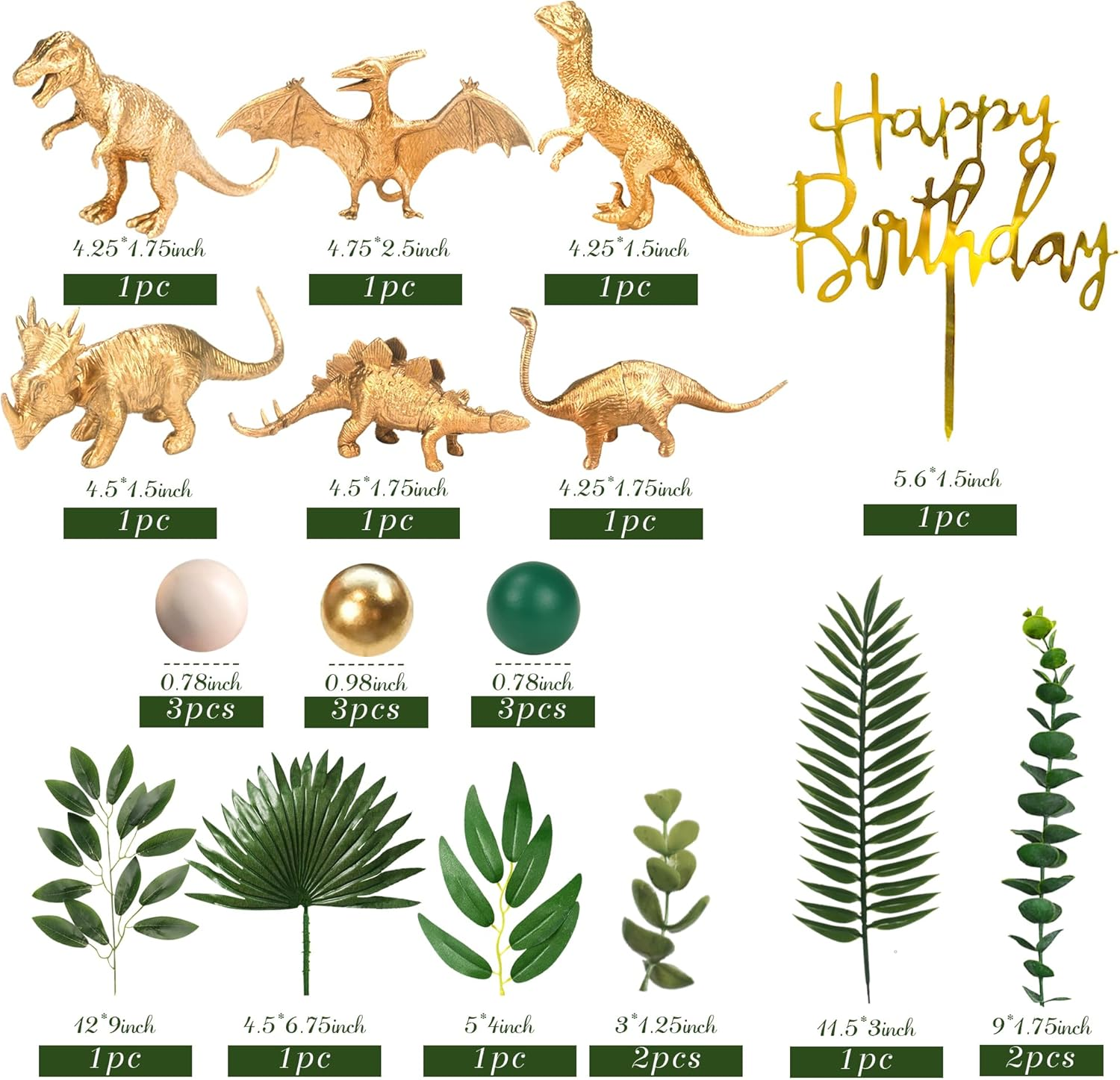 21 PCS Gold Dinosaur Cake Toppers Dinosaur Figures Green Ball Cake Decoration for Boy Girl Birthday Baby Shower Dinosaur Theme Party Supplies (Gold) WARNING: CHOKING HAZARD—Small parts. Not for children under 3 Years. Package Included: 6 x gold dinosaurs, 1 x acrylic birthday topper, 2 x green palm leaves, 6 x fake leaves, 3 x green ball cake toppers, 3 x gold ball cake toppers, 3 x khaki ball cake toppers. The specific size is shown in the picture. MATERIAL: gold dinosaurs and fake leaves are made of plastic, non-toxic paint, solid toys for toddlers, boys and girls. Ball cake toppers are made of foam and iron wire rod, safe and reliable. It suits your DIY cakes or art crafts Design: gold dinosaur figure toys have six types of tyrannosaurus, pterosaur, stegosaurus, Triceratops, brontosaurus and Heterodontosaurus with vivid shape. Fake leaves and ball cake toppers create a jungle atmosphere which make people enjoy the time Widely use: dinosaurs and cake toppers are featured with vivid modeling for birthday party, baby shower, holiday party decoration. Perfect for engagements, weddings, anniversaries, birthday parties, garden parties, home decoration. Besides being used as cake decorations, dinosaurs can also be used as toys for kids Imaginative play: These toys will spark children's imagination for hours by keeping your child away from electronics and letting your child's imagination run wild as they create imaginative interactions with wildlife figurines. Suitable for children over 6 years old Product Description Item model number GCMGG10006 Unit Count 24.0 Count Style Gold Product Dimensions 1.1"W x 1"H Country of Origin China Item Weight 5.3 ounces Manufacturer recommended age 8 - 15 years Occasion Birthday 1.0 "h x 1.1 "h. Weight: 5.3 oz Shipping from the USA All of our products are shipped from the USA, ensuring quick delivery to your destination. Payment We offer the following payment methods: PayPal, credit card, bank transfer, and eBay's secure payment system. Free Shipping & Free Returns Shipping within the USA is FREE. Additionally, any return is absolutely free for you. Risk-Free Purchase You have the option to return an item within 30 days without any justification. We cover the return shipping costs! Fast Shipping We ship immediately upon receipt of payment. Generally, the package is delivered within 2-3 days in the USA. If it takes longer, we will contact you. Quality and Costs Made in Europe, USA, China No customs fees or additional charges Total satisfaction guarantee Invoice with declared VAT available upon request in .pdf format Feedback Your feedback is very important to us. After you pay for your purchase, you will automatically receive positive feedback from us.
