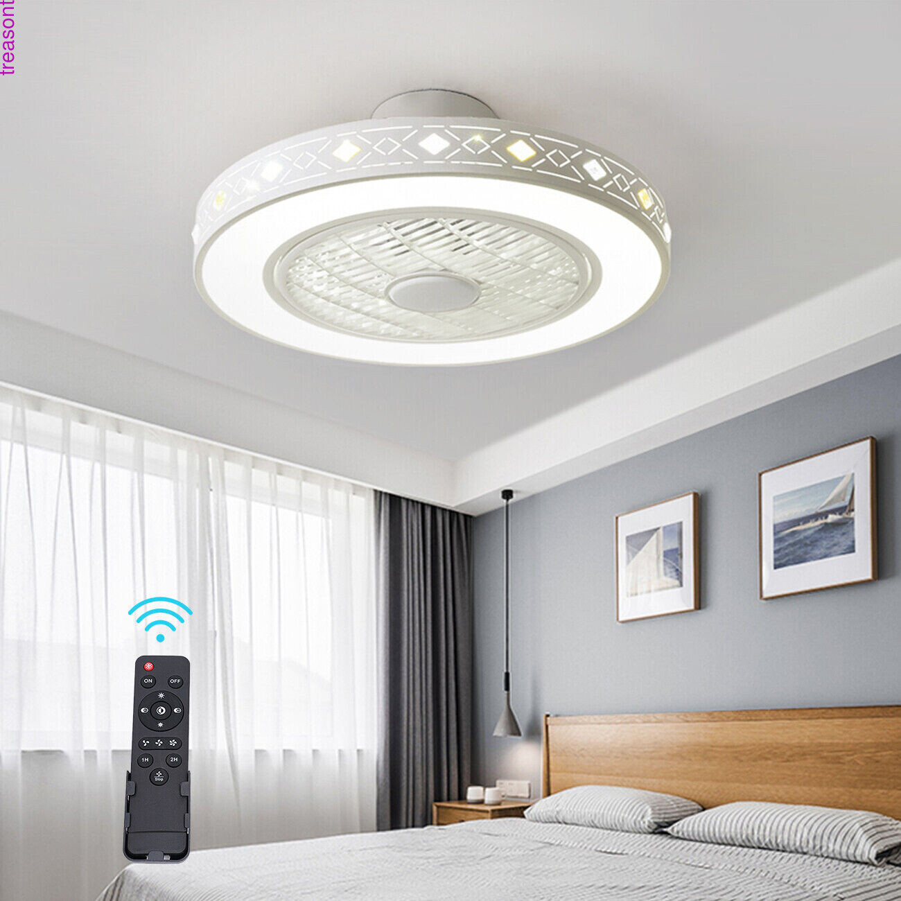 This ceiling fan lamp is a game-changer! The sleek modern design blends perfectly with any decor, and the dimmable LED lighting offers three adjustable tones to set the right mood. The remote control makes it super convenient to switch between three fan speeds and light settings without leaving your seat. The enclosed round design keeps dust away while providing even, soft lighting. It’s quiet, energy-efficient, and adds a touch of elegance to any room. Installation was straightforward, and the build quality feels sturdy. Perfect for living rooms or bedrooms—functionality and style in one!
