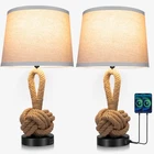 VALLERICO Boho Table Lamps for Living Room Set of 2 Our lamps for night stands feature a light brown rattan lamp body that complements the beige lampshade and black metal base with USB ports, making it both a functional bohemian rattan table lamps for living room and a structurally sound and aesthetically pleasing artwork. The bedside lamps set of 2 are suitable for lighting and decoration of any indoor space, such as living rooms, bedrooms, etc. 100% Handmade Rope Rattan Lamps for Night Stands The nightstand lamp’s durable metal frame is wrapped in natural thick hemp rattan, seamlessly blending nature and art. Each side table lamp's rattan is handcrafted by expert craftsmen, which is time-consuming and labor-intensive, just to bring you a unique decorative boho table lamps for living room. 3-Color Temperature Bedside Lamps Boho Our lamp for bedroom nightstand offer 3 color temperatures (2700K/4000K/5000K) to meet your daily lighting needs in different occasions! 2700K warm white is great for nightstand lighting, 4000K natural white is a perfect choice for basic daily lighting, and 5000K daylight white is highly suited for reading or working. USB A+C Charging Ports are available when ever the side table lamp for bedroom is turn on or off! Each nightstand lamp's base is built-in two 5V/2.1A USB A+C ports, you can charge your two electronic devices simultaneously at any time, which can solve the problem of insufficient sockets and keep your desktop clean. Specifications Material: Metal, Hemp Rope Rattan, Fabric Product Height: 22 Inch Switch Type: Rotary Switch Voltage: 110-120V Base Type: E26 Charging Ports: USB A+C Style: Boho Supportive Wattage: 60W Max Package Contains 2 x Rattan Lamp Body 2 x Beige Fabric Lampshades 2 x 9W LED Bulbs 1 x User Manual Hand-woven Rattan Lamp: Our boho nightstand lamps set of 2 are 22" tall, and the entire lamp body is made of a sturdy metal frame wrapped in natural thick hemp rope rattan. Equipped with the 12” wide linen lampshade, these boho lamps for night stands can effectively soften the light. Each lamp's rattan is handcrafted by expert craftsmen, making these bedside lamps a unique artwork. This boho table lamp with usb port not just being used for daily lighting, but also a eye-catching decoration for your home 3 Color Temperatures Boho Lamp: We have equipped the bedside lamps set of 2 with customized LED bulbs, providing you with three color temperatures to choose from 2700K-4000K-5000K. The 2700K warm white light can be used as an ambient lamp, 4000K natural white light is suitable for reading, and 5000K daylight white light can provide enough lighting for working. Simply turn clockwise on the rotary switch to adjust the color temperature to meet your daily lighting needs in different occasions Convenient USB A+C Charging Ports: Keep your devices charging and your space clutter-free with two 5V/2.1A USB A+C ports built into each nightstand lamp base. Our table lamps for living room are convenient for charging your mobile phone, tablet PC, humidifier, and other electronic devices at any time. Even when the bedside table lamp for bedroom is turned off, the charging function is still available, effectively saving your time and space 2pcs LED Bulbs Included: We have provided two free LED bulbs worth $12 for our boho lamps for bedroom. These two 800 lumens E26 9W LED bulbs are equivalent to 100W incandescent bulbs and have three color temperature functions, which are more energy-efficient. Choosing our rattan table lamps set of 2 will greatly save your time and money in purchasing additional light bulbs Easy to Assemble: Assembling our rattan table lamp with usb port is incredibly easy. No tools are needed, all parts are easy to assemble in a few minutes by following the detailed instructions. (Please NOTE: Lampshades need to be assembled.) If there is any damage caused by transportation, or if you have any question about these bedroom lamps set of 2, please feel free to contact us via Amazon message box at any time, we will respond to you within 24 hours and make everything right for you