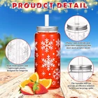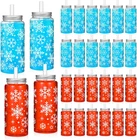 24 Pack Christmas Reusable Cups Bulk 13.5 oz Plastic Cups with Lids and Straws Xmas Drinking Holiday Cups Set Reusable Party Coffee Jar Water Bottles for Party Drinks(White Snowflake)