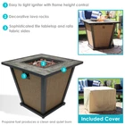 Sunnydaze Reykir Outdoor Propane Gas Fire Pit - Metal frame with rafa fabric sides and tile tabletop - Includes gas fire pit, stainless steel burner, decorative lava rocks, regulator hose, protective cover, lid - Easily ignites with the turn of the knob - Produces warm, clean-burning fires - 28" W x 28" D x 24" H; 51.4 lbs... 24 in Reykir Metal Smokeless Propane Gas Fire Pit Table by Sunnydaze Product Video Demo Video will open in a new window Using the eBay App? Paste link into a browser window: Features Sunnydaze Reykir Outdoor Propane Gas Fire Pit Metal frame with rafa fabric sides and tile tabletop Includes gas fire pit, stainless steel burner, decorative lava rocks, regulator hose, protective cover, lid Easily ignites with the turn of the knob Produces warm, clean-burning fires 28" W x 28" D x 24" H; 51.4 lbs Details and Specifications Enjoy the warmth and comfort of a cozy fire without any of the smoke, ashes, or similar maintenance or a traditional fire with the elegant Reykir outdoor gas fire pit table. Powered by liquid propane, this fire pit table easily ignites and produces clean-burning fires without the smoke or cleanup of traditional wood burning firepits. This stylish fire table has a durable metal frame and tabletop with rafa fabric sides for a unique look that will complement any patio decor or furniture. This sophisticated tile tabletop provides a convenient surface where you can place a drink or book as you chat with friends around the fire. This table comes with decorative lava rocks that light up easily and create a fun, unique experience on any patio, deck, front porch, sunroom, or other living space. This fire pit table also includes a cover to easily protect this table from the elements and keep it elegant and strong for years to come. Features GREAT SIZE: This fire pit measures 28" square x 24" H. The tabletop measures 28" square x 1" thick. The base is 17.25" square. The clearance height is 0.5" tall. The fire area is 13" square x 2.25" deep. The door measures 19.25" W at the top (12.75" W at bottom) x 20.5" H. The burner ring has a 10" diameter. The Inner chamber measures 20" square at the top (16" square at bottom) x 20.75" tall. The hose measures 20" long. It weighs 51.4 lbs. BEAUTIFUL PROPANE FIRE PIT TABLE: This fire pit features a durable metal frame with stylish rafa fabric sides and a tile tabletop for a unique look. Adjustable rubber feet will help keep the fire pit level. EASY TO ASSEMBLE: This product includes 1 outdoor fire pit, 1 stainless steel burner, decorative lava rocks, 1 protective cover and 1 regulator hose. Two people are required for assembly. This patio fire pit table is designed for use with a 20-pound liquid propane tank (tank and fuel not included). COZY WARMTH: This 40,000 BTU smokeless fire pit table uses propane fuel to create warm fires with no mess or maintenance required. It also features convenient Piezo ignition. WORRY-FREE PURCHASING: Sunnydaze Decor backs its products with a 1-year manufacturer's warranty. Item Specifics Brand Sunnydaze Decor MPN WAR-210 UPC 810047672210 Country of Manufacture China Material(s) Polyester, Canvas, Steel, Steel Shipping It is always our intent to process and ship out orders as quickly as possible. Please see below for some commonly asked questions relating to shipping. Where will you ship? The information here is primarily for Ground Shipping to the 48 Contiguous United States and Canada. We also can ship most items to AK and HI. How long will it take to get to me once it has shipped? If you are in the 48 Continental United States or Canada, your item will typically take 3-7 business days via UPS or FedEx as well as Common Carrier items. Alaska and Hawaii can take a little longer, 4-10 business days is common. Please do not count weekends. UPS will not deliver on Saturday, however FedEx does in some residential areas if shipping ground. Will I incur any additional fees shipping to Canada? Yes, typically you will be charged a brokerage charge for shipping to Canada. We are not responsible for any brokerage charges on any packages shipping to Canada. Those charges come from a combination of Canadian Customs and the shipping companies, like UPS and FedEx. We cannot control these costs as they are not charges that SerenityHealth charges. We only charge the regular Shipping & Handling charge. On top of that, generally, the higher the value of the item, the higher the brokerage charge, and we have no way of knowing how much those brokerage charges are. So, if your package is shipping to Canada, you may want to consider this before you place your order. With larger fountains that ship LTL (common carrier), a broker may be needed. We will contact you to get your broker information at the time of your order. If you don't have a broker and we have to assign one, there may be additional charges (Approximately $100 or less). We will notify you of these charges before shipping your item if you don't provide us with broker information. Again, this is only for some large items that ship via Common Carrier. What shipping method will be used? We use UPS and FedEx or USPS for delivery of most products. The exception is the larger water fountains over 150 lbs or volume orders. These may ship Common Carrier. Where will my product ship from? We are located in Wisconsin. Some of our products are shipped from our own warehouse here, and some are shipped from our associated warehouses in California, Oregon, Texas, North Carolina, Pennsylvania, New York, and Louisiana. When will my order be processed? Generally, your order will be processed the next business day from the day you placed it. We will process any orders that come in on a business day before 2:00PM CST the same business day. Any orders that come into us on Saturday, Sunday or a legal holiday will be processed the Next Business Day. Will I receive a tracking number for my order? Most of our items ship out of our warehouse here in WI so when we ship we will u