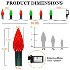 240 LED 78FT C6 Christmas String Lights, Super Long and Bright Fairy Twinkle Lights Plug in with 8 Modes & Timer, Waterproof Red and Green Lights for Indoor Outdoor Xmas Tree Holiday Party Decoration Upgraded Super Long C6 String Lights: Our C6 Christmas string lights are designed with 240pcs high quality plastic strawberry shaped C6 LED bulbs, which is not only visually appealing but also durable. The fairy lights total length of 87.8ft, 78ft lights wire and 9.8ft leading wire. This super long fairy string lights will easily cover a larger area, such as your home, yard, or garden, creating a magical atmosphere for your Christmas celebration 8 Lighting Modes and Timer Function: The twinkle string lights for outside have a mode button. You can select 8 different modes to satisfy your diverse needs, including combination, in waves, sequential, slow glow, chasing, slow fade, twinkle, Steady on. With built-in timer, long press the button of the adapter to green, the timer function acitivated and it will be on for 6 hours and off for 18 hours repeatedly everday. To cancel the timer, simply press the button of the adaptor for 3 seconds to turn off the green indicator UL Certified Adapter and Safe for Use: The adapter of C6 string lights is UL certified and meets all safety standards. 29V low voltage, keep at a low temperature state after lighting up for hours, ensure the safety. Our Christmas string lights feature a convenient plug-in design, simply plug in and enjoy the enchanting glow Waterproof and Indoor Outdoor Use: With IP44 waterproof design, our red and green twinkle lights are durable enough to withstand most of weather conditions, such as rain, snow and sleet. You can easily use the Christmas string lights both indoor and outdoor, wherever you want to create a magical atmosphere. Please protect the plug from being immersed in water Perfect Christmas Decorations: The pinecone C6 string lights plug in is perfect for indoor and outdoor decoration, such as Christmas trees, roofs, fireplaces, bars, gardens, courtyards, balconies, or any place you want to decorate. These decorative lights are particularly suitable for Christmas, Halloween, parties, weddings, Thanksgiving, festivals, or any holiday and ceremony. Whether it's for indoor parties or outdoor gatherings, these lights will enhance the atmosphere and bring joy to any occasion