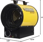 Nullify Imported Electric 240 volts 20 amps electric 4000 watt model Heats up to 500 sq. ft Dura heat electric forced air, euh4000, 13,640 BTU output. Built-In turbo fan and tubular cabinet. Automatic thermostat and overheat shut off. Fan only setting. Adjustable stand allows directional adjustment. Ceiling/Wall mounting kit.