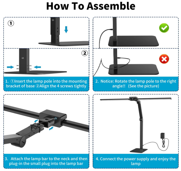 KableRika Desk Lamp Home Office: 24W Bright Double Led Desk Lights with Base - Auto Dimming Table Light - Dimmable Eye Caring Task Office Lamps for Monitor Study Drafting Base Material Metal Product Dimensions 5.9"D x 31.5"W x 21.6"H Lamp Type Desk Lamp Shade Color black Shade Material Metal About this item 【 Super Wide with Double Head 】 KableRika desk clamp lamp features double head with 31.5inch wide-spanning and 24w super bright lamp bars,make it a perfect light solution to illuminate entire large table or L-shape multi tasks desk evenly. And it also can be side lamp when the lamp heads arranged together for bright, targeted desk lighting. 【 Foldable Swing Arm Lamp 】 The table light has strongly damped joints swing arms for freely adjust the lamp's working height, and its powerful support can steadily hold the lamp and won’t fall down. The base can be 360°rotatable, 【 ROTATAE the lamp pole 】 and make the lamp facing the front (correct) side of the baseplate. 【 Easy Operated Front Buttons 】 The buttons are designed in front of the Led light bar which is easy to see and reach when sitting and smooth to switch the light modes: 4 brightness levels and 4 color modes. 【 Auto Dimming Mode 】 Built-in Smart Lighting Sensor it will automatically sense your surroundings and adjust brightness to the most proper level. 【 Stable Metal Heavy Base & 360° Rotatable 】 This tall desk lamp equipped with anti-slip metal heavy base allows it stand on any kind of tabletop steadily and it takes up little desk space, simple to place it on the desk to accommodate your different lighting needs: back of monitor or side of desk but not get in the way of monitors. 【 CRI>95 Eye Caring & 30Min Timer 】 With high color rendering index LEDs(CRI>95), this office lamp provides constant flicker-free diffused lighting without eye strain, it lights up your work area but no-glare when you're reading on a computer screen. 【 30-min auto off timer 】 long press power button till the light flash twice, the timer activates. . We offer FREE shipping on all orders! . We ship within Five business days of payment, usually sooner. . We use a selection of shipping services such as UPS, FedEx, USPS etc. . We only ship to the lower 48 states, no APO/FPO addresses or PO Boxes allowed. . Local pickups and combined shipping options are not provided at this time. . Your satisfaction is a wonderful reward for our efforts. Please assist us by leaving a positive review if you feel pleased with our service. . In the event that you encounter any difficulties related to your order, please do not hesitate to reach out to us directly through the Messaging system on the Ebay platform. Kindly consider opening a COMPLAINT or a RETURN REQUEST as a last resort, only after all other possible measures have been attempted and we have been unable to provide you with assistance. . We will get in touch with you within 24 hours and make every effort to ensure your satisfaction. . Please rest assured of our service quality.