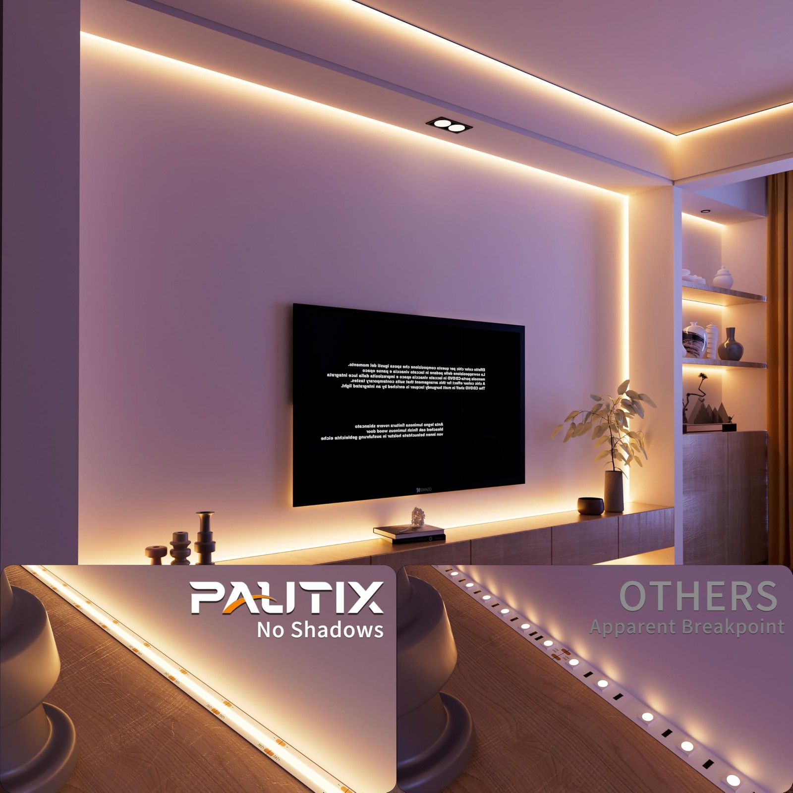 What is COB LED? - COB(“Chip on Board” ),multi LED chips are packaged together as one lighting module. - COB LEDs have a number of advantages over older LED technologies, such as Surface Mounted Device ("SMD") LEDs. The advantages of COB LED Strip Lights: - Better lighting effect: 180 beam angle,dotless lighting, no light spot - High light efficacy: Lower power, higher light efficacy -Easy Installation: Stronger 3M adhesive for easy and durable installation.Dimmable LED strip lights for Party Cabinet Bedroom Kitchen Home DIY Decoration Upgraded RF Remote and controller set - Memory Function - Brightness adjustment - Speed adjustment - Timer Function Specification -Width: 8mm -LEDs: 504LEDs/M -Color Temperature: 2700K -Length: 24ft/7.5m -Power Adapter:24V/2A Cutting Unit: Every 1.57in/40mm Package List: - UL-Listed 24ft COB LED Strip Light x 1 - Power Supply(24V/2A) x1 - 3-Button Controller x1 - 17-Key RF Remote x1 - User manual x 1 cob led strip,cob led strip light,cob light strip,led cob strip,cob led,cob led strip rgb,rgb cob led strip,warm white led strip lights,warm white led strip light,bright white led strip,cob rgb led strip,white strip lights with remote,white led strip lights,led strip lights,cob strip light 24v 12v 5v usb super bright high lumen CRI90 warm white strip light led cob 2700K 3000K 4000K 5000K 6000K 6500K SUPER BRIGHT & LONGER LENGTH: Never heard of COB LED Strip Light?A COB(Chip On Board) LED light has multiple chips on the PCB (Printed Circuit Board) than SMD Type,3780 LEDs on this 24.6ft/7.5m COB LED Strip Lights(504LEDs/m),which creates super even lighting performance,NO DARK SPOTS! 2700K color temperature,you'll enjoy an incredibly bright illumination with improved color quality DIMMABLE and TIMER FUNCTION: Comes with NEW EXCLUSIVE DESIGN 17-Key RF Remote and 3-Button controller(receiver),it has memory function, timer function(0.5H/1H/3H), brightness up/down(10-level), speed up/down(8-level in dynamic mode). RF Remote is multi-directional,you can control your led strip at any angle within 49ft/15m DIY and Long Lifespan: With stronger 3M self-adhesive,high flexibility and cuttable design, White COB led strip light can be reliably installed on clean/dry/smooth surface,you can bend the lights around the corners or in tight spaces,8mm width for invisible installation.Real double-layer PCB board and advanced materials make it safe and to be a long lifespan,the service life is more than 65,000 hours UL-LISTED & WIDELY USE: COB LED Strip Lights are UL-Listed which is safe for daily use.2700K Warm White COB LED Strip light is ideal for high-end business clubs, under cabinet, dressing mirror, make-up table, closet, bunk bed light,bookshelf, wine shelf, stairways, TV backlight and other dry/clean/smooth places need DIY lighting decoration STANDARD KIT: Each light kit comes with a 16.4ft bright warm white DC24V self-adhesive COB strip light roll, a power adapter(24V/2A),a 17-Key RF Remote and a 3-Button control box for dimming