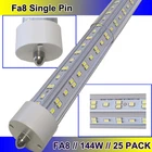 FAST DELIVERY - Ship from New Jersey or Los Angeles Warehouse via FedEx , 3-7 Days Delivered Your Door . SCIENTIFIC DESIGN - 8Ft LED Shop Lights Fixture is Made of 6500K Cold White SMD2835 LED Chip ,Plastic Clear Cover , Aluminum Bracket Housing ,and AC85-277V Constant Current Driver . It can work in -68F to 120F Temperature Conditions EASY INSTALLATION - The Integrated Tube Fixture Can be Install on Wall or Ceiling ,Easily Replace Traditional Fluorescent Tube Bulb . Plug and Play , Free Accessories (Power Cords, Connector , Extension Cords , Clip and Screw ) Come with Tube Lights Together WIDE APPLICATION - Linkable 8Ft Bulbs Widely Used in Garage Ceiling , Barbershop , Schools, Hospitals Basement , Factory Warehouses , Supermarkets Cooler Door , Offices, Shops,Hotels, etc 25 Pack 8FT FA8 Single Pin Led Tube Light Bulbs 144W 8Foot Led Shop Lights 6500K 【No RF & FM Interference】LED Driver have passed Electromagnetic Magnetic Compatibility EMC tests,No cause EMI ,No longer subject to any RF & FM jamming. Never interfering with the signal of your garage roller shutter door,No make noise when you listen radio 【Easy to Install】Just simply bypass the ballast and connection AC85-277V AC power . Not compatible with single-ended powered sockets 【Wide Application】 - 8Ft 144W V Shaped FA8 HO LED Bulb fitted to replace traditional F96T12 T8 T10 T12 fluorescent bulbs. Widely used in Garage,supermarkets, offices , convenience stores , gas stations , warehouse,parking lot,shops, hotels,Refrigerator,coolers or freezers illumination,etc 【High Output】8Ft 144W 18000LM FA8 【Rotate Cap & Swivel End】 Easy Adjust rotated Lighting Direction within 180 degree after Installation